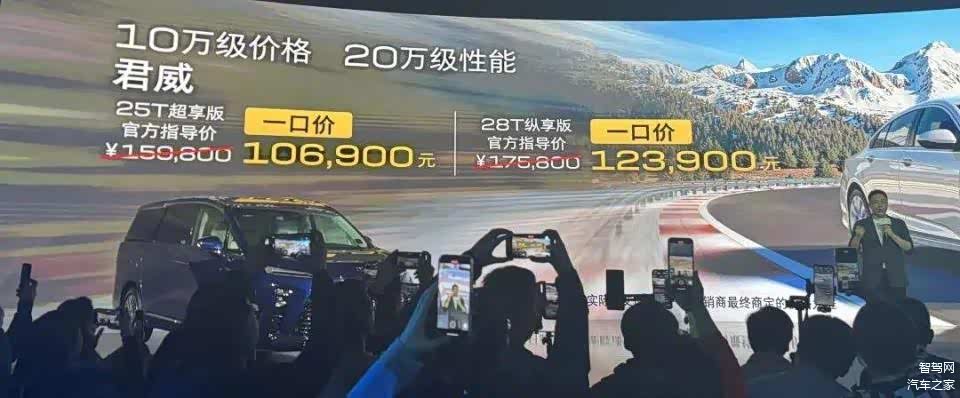 “君威10.69万元起,全国统一一口价,全面启用新能源定价模式。”有媒体老师在台下喃喃自语:“合资品牌B级车卖到A级价,这谁受得了。”