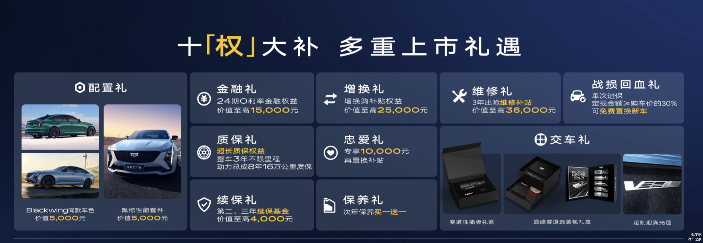 售价方面,凯迪拉克全新CT5城市运动版,官方指导价29.99万元,限时一口价21.59万元;与官方指导价相比最高降幅为8.4万元(此购车权益限4月30日(含当天)前提车可享 )。赛道性能版官方指导价32.09万元,限时一口价24.59万元;赛道性能版标配黑标性能套件,在外观细节上与城市运动版有所差异,并且在配置上也更为丰富,如增加了MRC4.0电磁悬架、mLSD机械式限滑后差速器、碳氮共渗刹车盘等。同时,新增的逐风蓝和台风绿两款车身配色,选装价均为5000元;赛道性能版+巅峰赛道选装包,官方指导价34.59万元,限时一口价26.59万元。全新CT5的售价在同级别车型中具有很高的性价比。而且,现在购买还能享受一系列的优惠,非常划算。