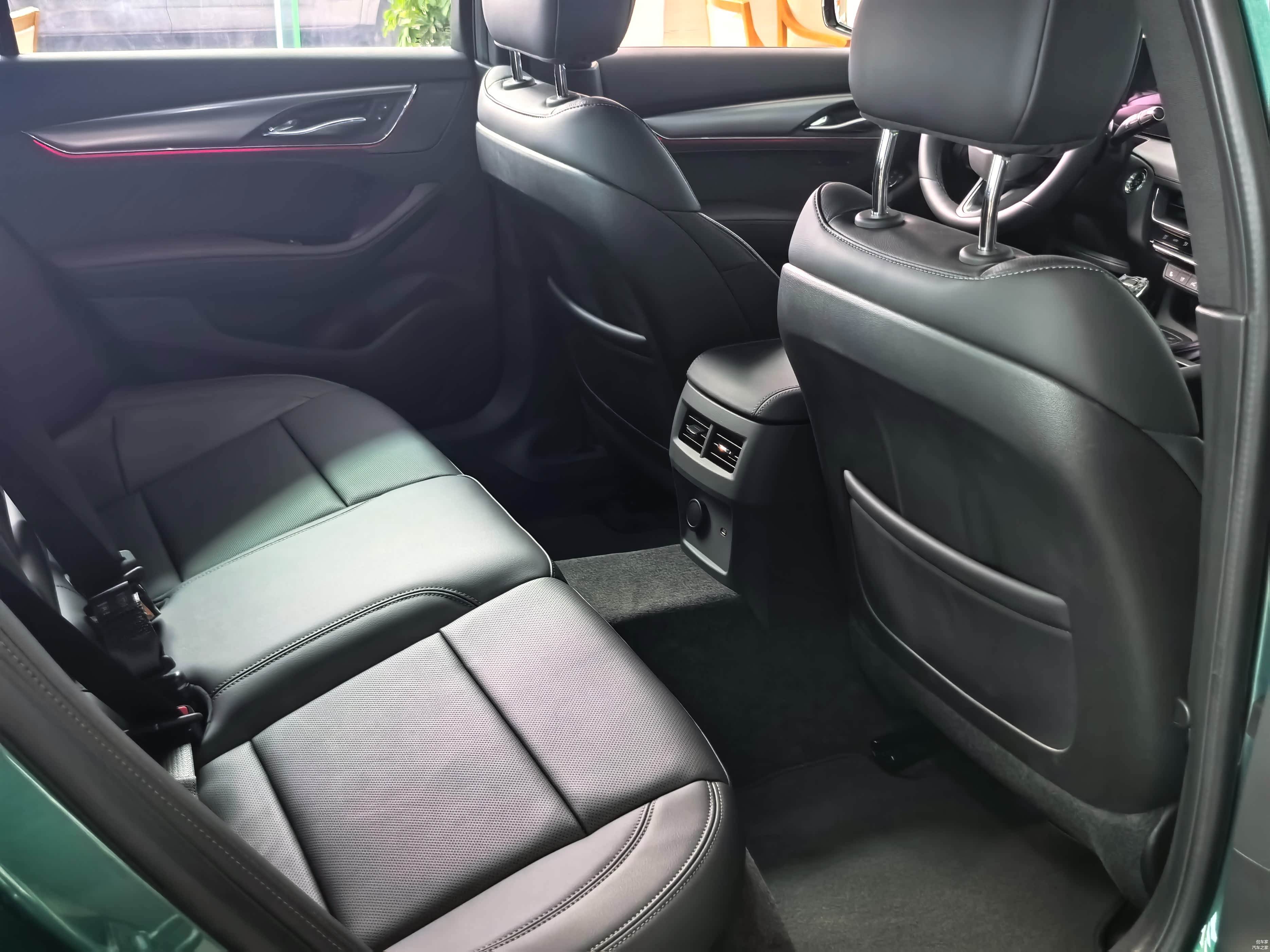 座椅是全新CT5的一大亮点。前排座椅采用Moli真皮包裹,支持12向电动调节和座椅记忆功能,无论是找到舒适的驾驶姿势,还是不同驾驶者切换时,都非常方便。座椅同时具备加热、通风和按摩功能,坐感软硬适中,能够给予身体足够的支撑,坐垫还配备了可手动调节腿拖,能根据个人需求自由调节,即使长时间驾驶也不易感到疲劳。后排座椅同样舒适,支持4/6比例放倒,坐感与前排相差无几,坐垫长度与倾斜角度设计合理,长时间乘坐也不会觉得累。后排还配有空调出风口与一个USB-C接口,中央扶手放下后有两个杯架和一个小置物空间,充分考虑到了后排乘客的需求。
