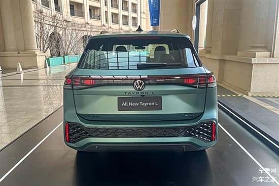 尾部造型十分饱满,下方网状的后包围设计与车头相呼应。贯穿式的尾灯样式颇为新奇,中间大众LOGO也可以被点亮。车身尺寸方面,R-Line版车型车长增加103mm,轴距增加60mm,乘坐空间表现会进一步提升。