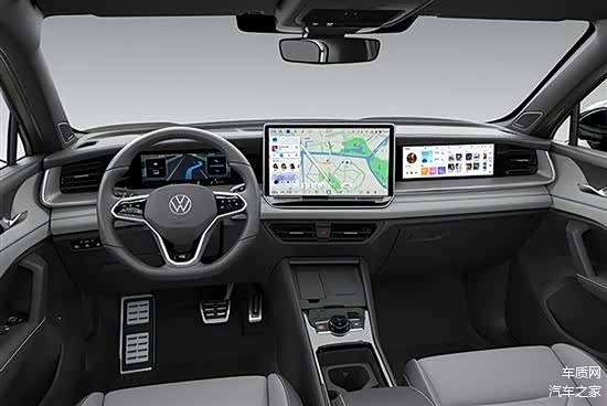 内饰方面,新车采用了大众家族最新式设计,包括全液晶仪表盘、15英寸中控屏以及11.6英寸副驾娱乐屏,提升了车内科技感。车机系统采用高通骁龙8155芯片,并支持CarPlay和CarLife互联。