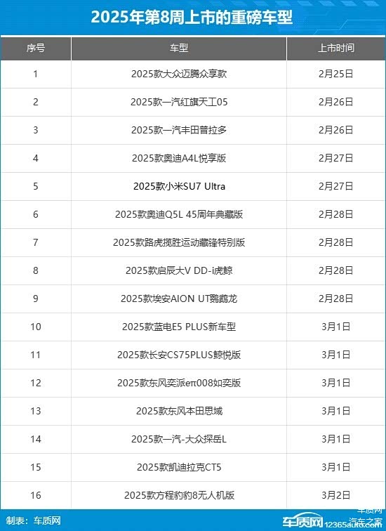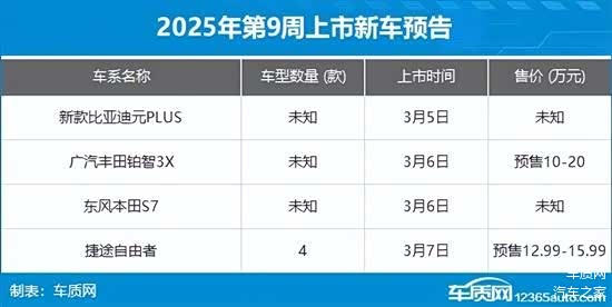 2025年第9周(3月3日-3月9日)上市新车预告