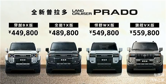 2月26日,2025款一汽丰田普拉多正式上市,新车推出推出6款车型,入门版车型的官方售价降低1万元,全能TX版降价3万元,售价区间为44.98-55.98万元。作为年度改款车型,其主要针对配置进行了调整。