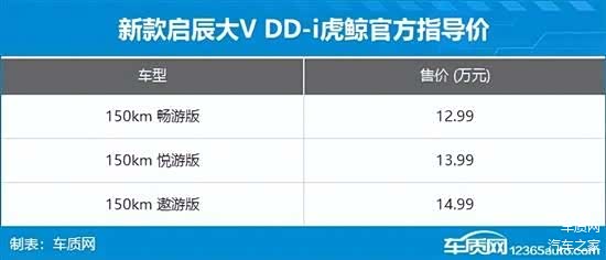 2月28日,新款启辰大V DD-i正式上市,此次共推出3款车型,售价区间为12.99-14.99万元,与此同时,官方还推出了限时权益价12.59-14.59万元和以旧换新价9.99-11.59万元。作为中期改款车型,新车主要针对外观设计和动力上进行升级。