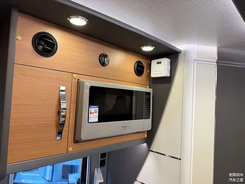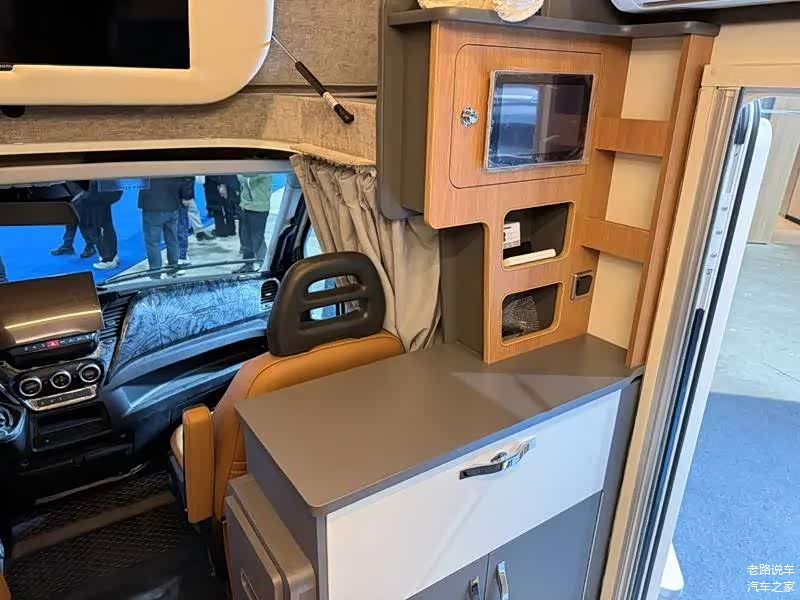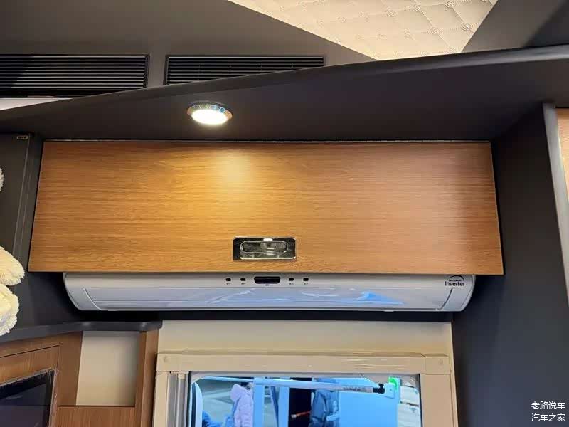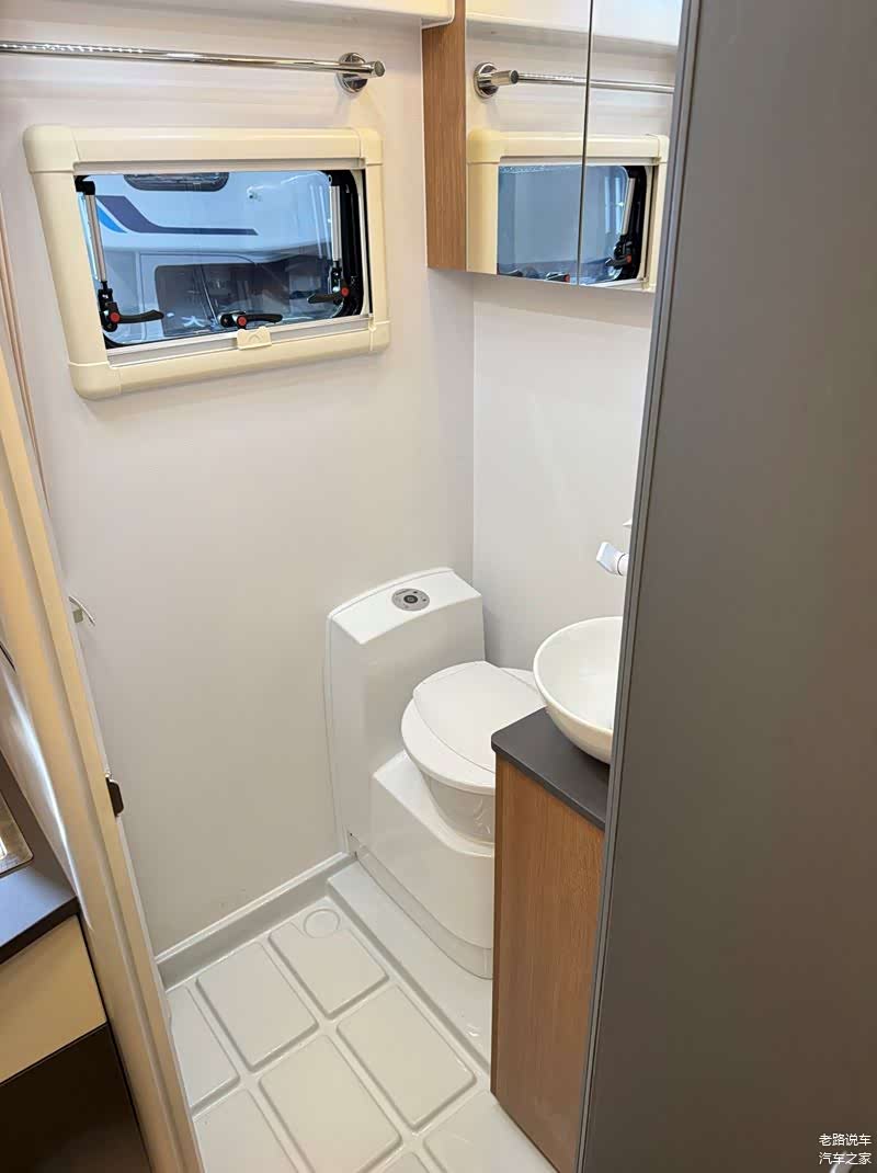 车内右侧后方是洗手间,从洗手间的空间可以直观感受到大吨位底盘的优势。