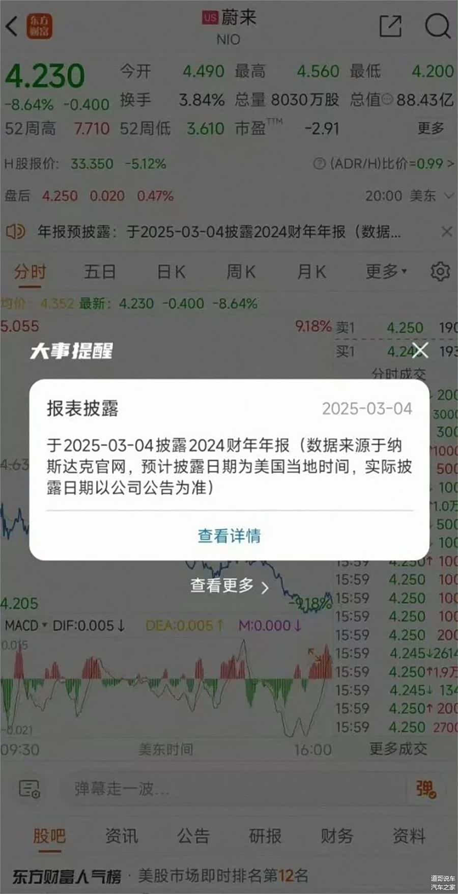 要知道彼时蔚来还没有发布2024Q4季度财报,那么,为什么会有人发了关于蔚来第四季度财报的负面?随后,有网友破案了,原因是股票软件提示蔚来今天会发财报,所以有人早早地设置好了定时黑稿。结果蔚来今天并没有发财报,这才暴露了。
