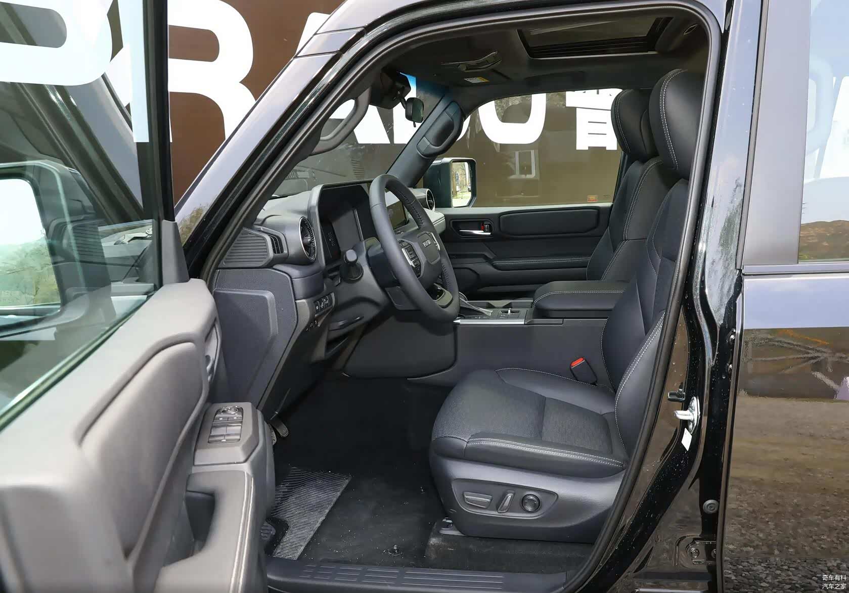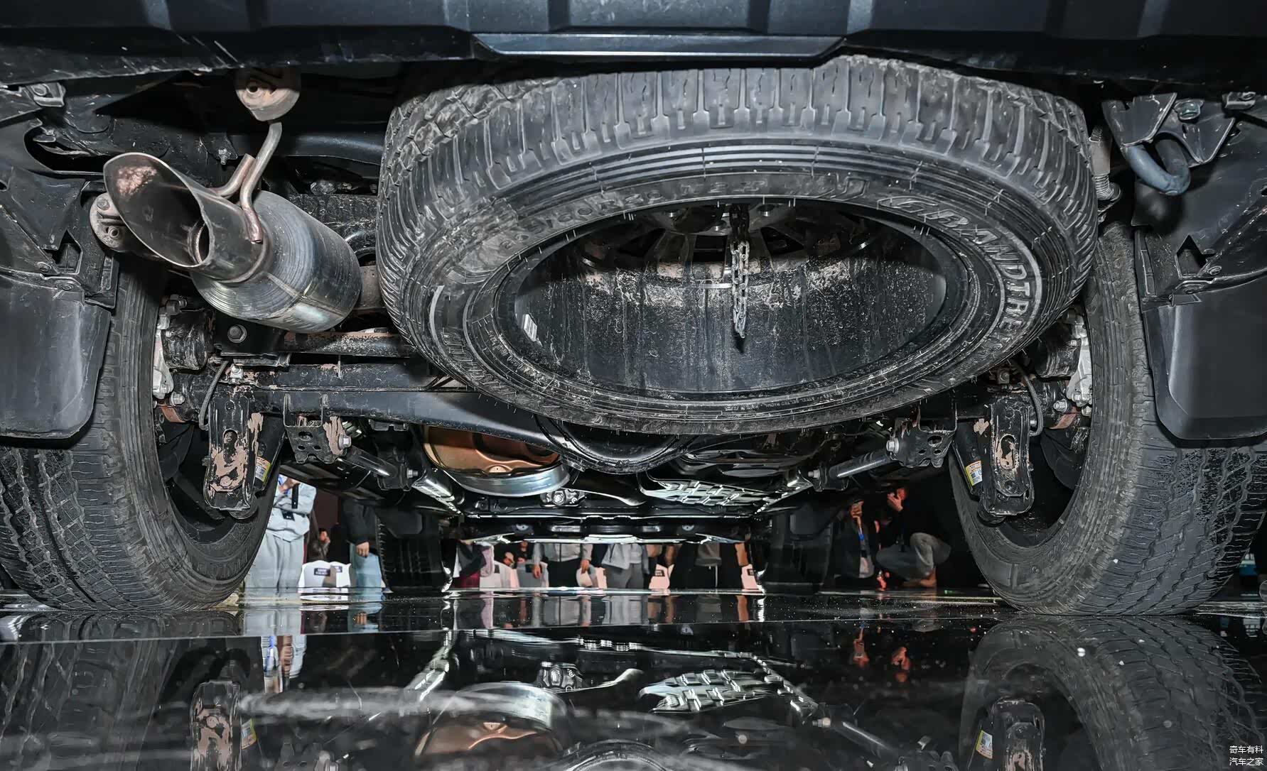 底盘方面,该车采用双叉臂式独立悬架+整体桥式非独立悬架组合,以及带大梁的非承载式车体结构。同时,还配备了全时四驱系统、托森LSD可锁止中央差速器、托森LSD后桥差速器,能够在复杂路况下智能分配动力,确保每个车轮都有足够的抓地力,提升车辆的通过性和脱困能力。此外,该车还搭载AVS自适应可变悬架系统,可以通过实时监测路况与驾驶模式,自动调节悬挂阻尼与硬度,用来提升车辆的操控性和舒适性。可以说,该车在低速时候偏舒适,悬架可以过滤大部分震动;在高速上,悬架支撑性好,具有不错的稳定性;越野时候,车身有韧性,全地形都不怕。
