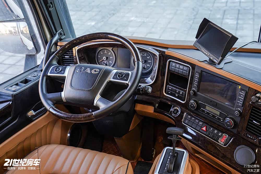 动力方面,大陆 G450 江淮重卡房车搭载了一台 4.5T 柴油发动机,与之匹配的是 6AT 变速箱,换挡平顺,操作简便。无论是在城市道路还是野外山路,都能轻松应对。此外,该车还配备了全时四驱系统和三把锁,越野性能卓越,能够轻松征服各种复杂地形。