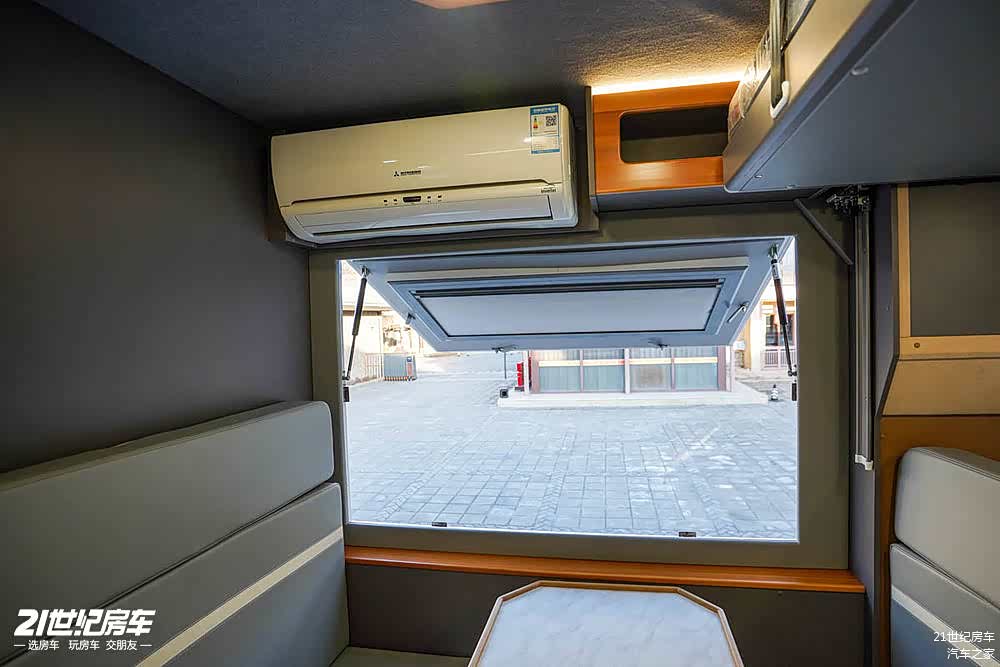 侧面一个尺寸较大的观景外推窗,上方一台三菱1.5P静音空调。