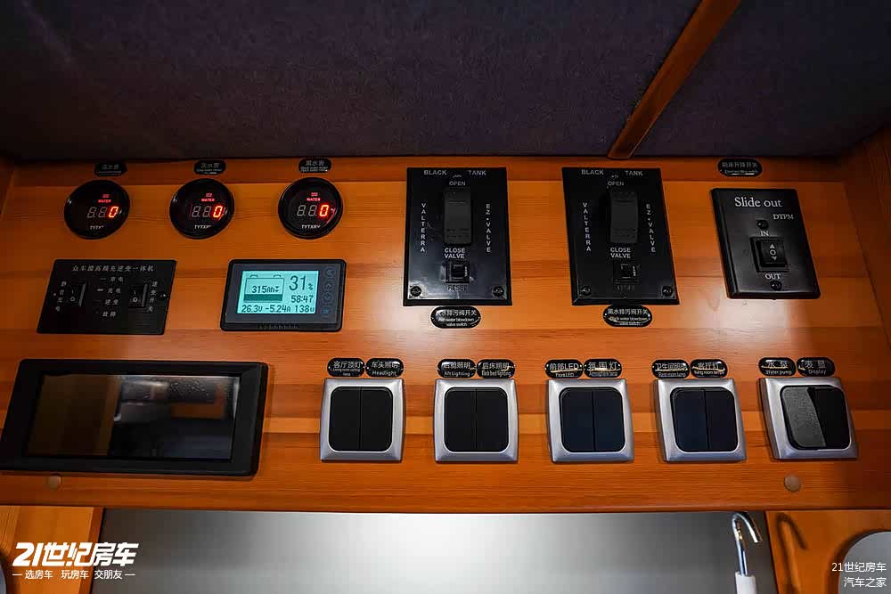 水路系统方面,拥有 300L 清水箱、150L 玻璃钢灰水箱(带进口电动排污阀)以及 60L 玻璃钢黑水箱(带进口电动排污阀),大容量的水箱配置能满足多人在较长时间内的生活用水需求,并且合理的排污设计也方便了废水的处理,让户外生活更加便捷卫生。