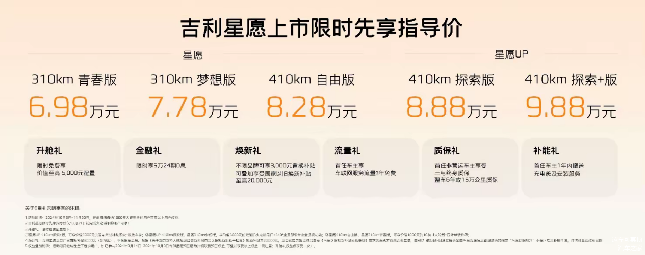 如果年初你也打算入手吉利星愿,那么请注意,配置千万要选对,因为有时候选错配置,可比选错车型更让人后悔!2025款吉利星愿总共有五个配置,其中310KM续航版本有两款,分别是青春版和梦想版。410KM续航版本有三款,分别是自由版、探索版和探索+版。