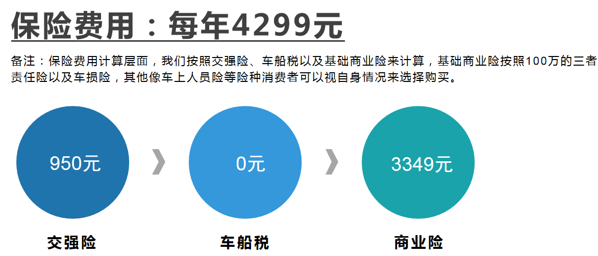 保险费用计算层面,我们按照交强险、车船税以及基础商业险来计算,基础商业险按照100万的三者责任险以及车损险,其他像车上人员险等额外险种消费者可以视自身情况来选择购买。另外,此价格也不考虑之后几年不出险的折扣以及保险公司的优惠等。