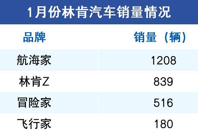 根据公开的销量数据显示,林肯近半年的月销量不超5000辆,今年1月份更是只卖出2743辆车。其中1月份销量最高的车型是林肯航海家,只卖出去1208辆,林肯Z销量是839辆、冒险家516辆、飞行家180辆。
