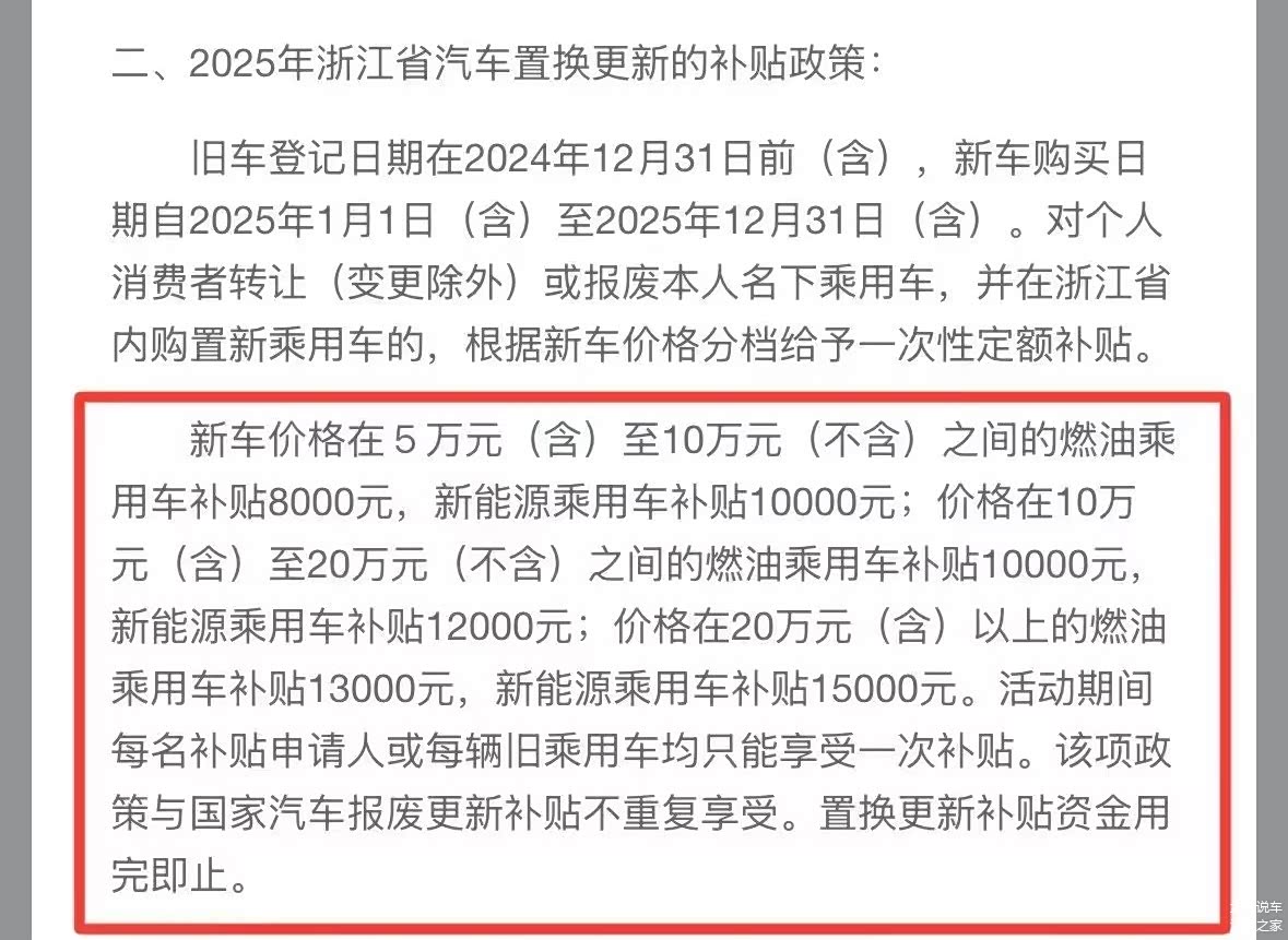 我是在浙江生活,以2025年浙江省汽车置换更新补贴为例。