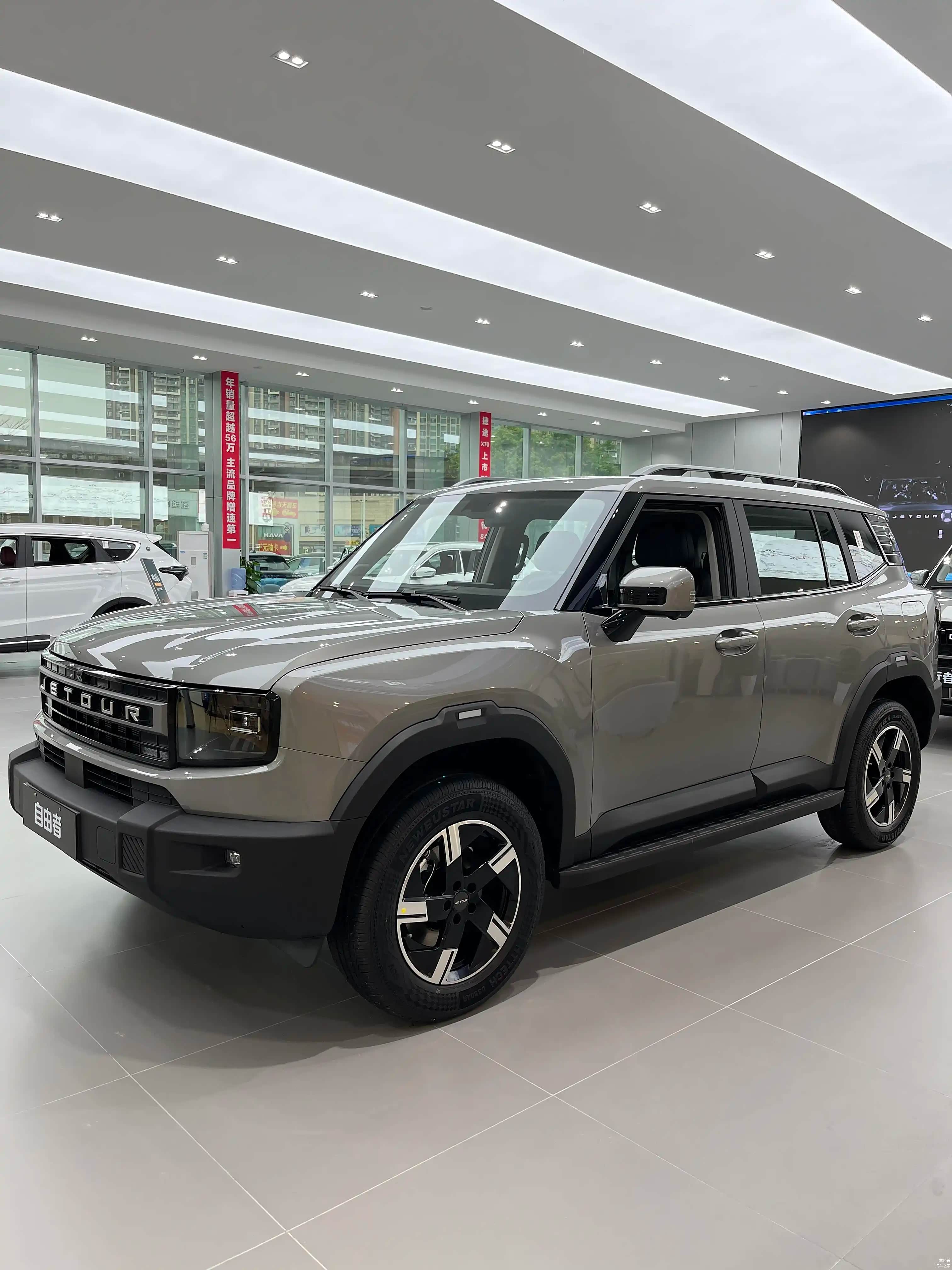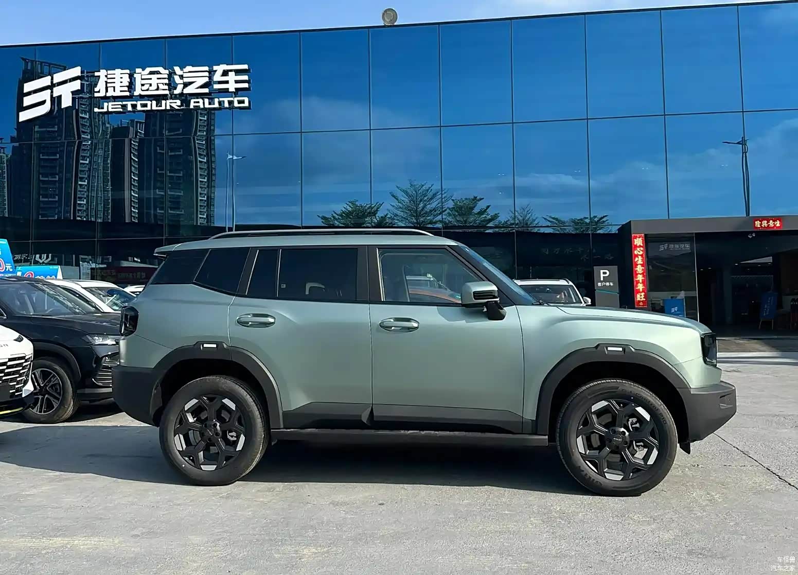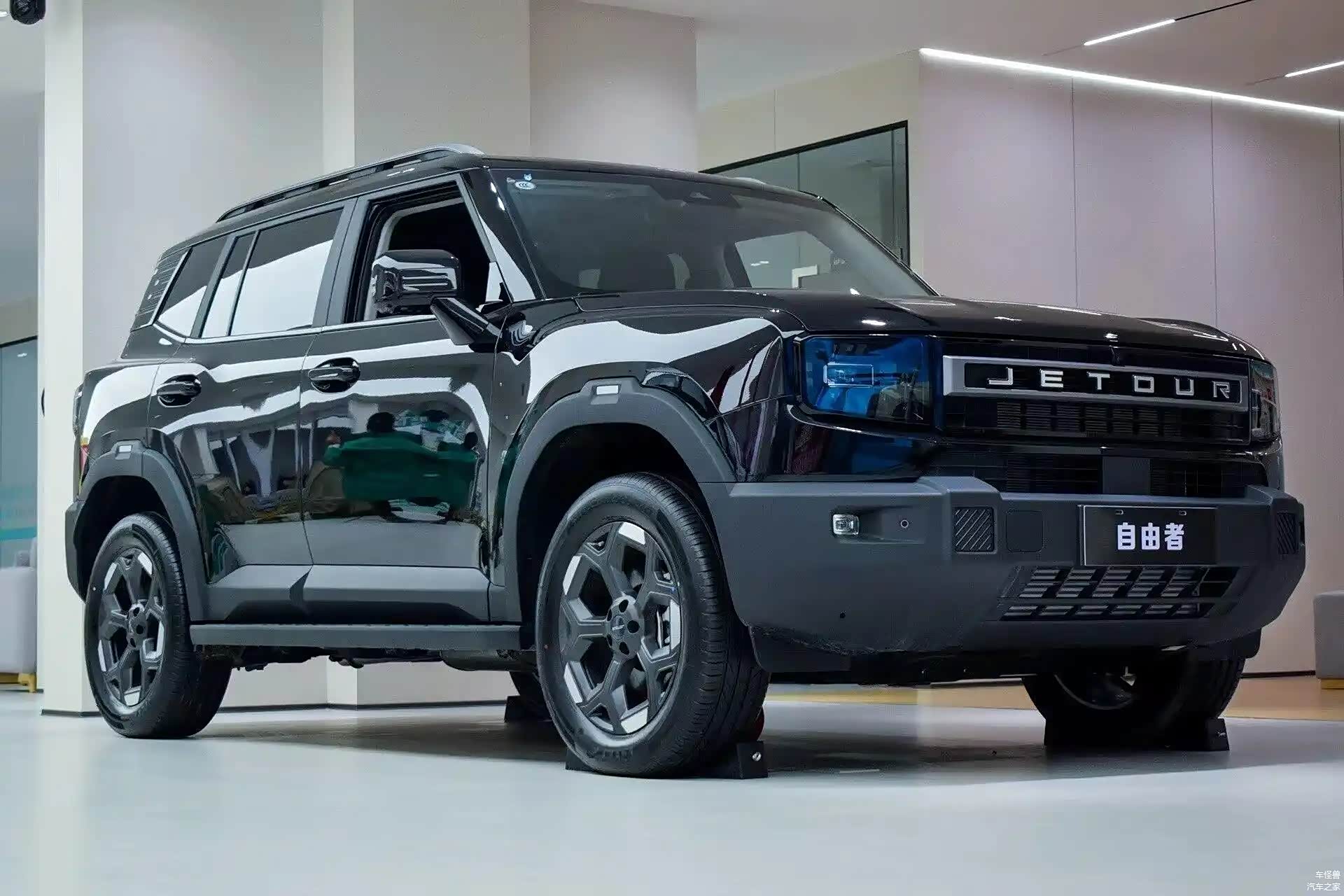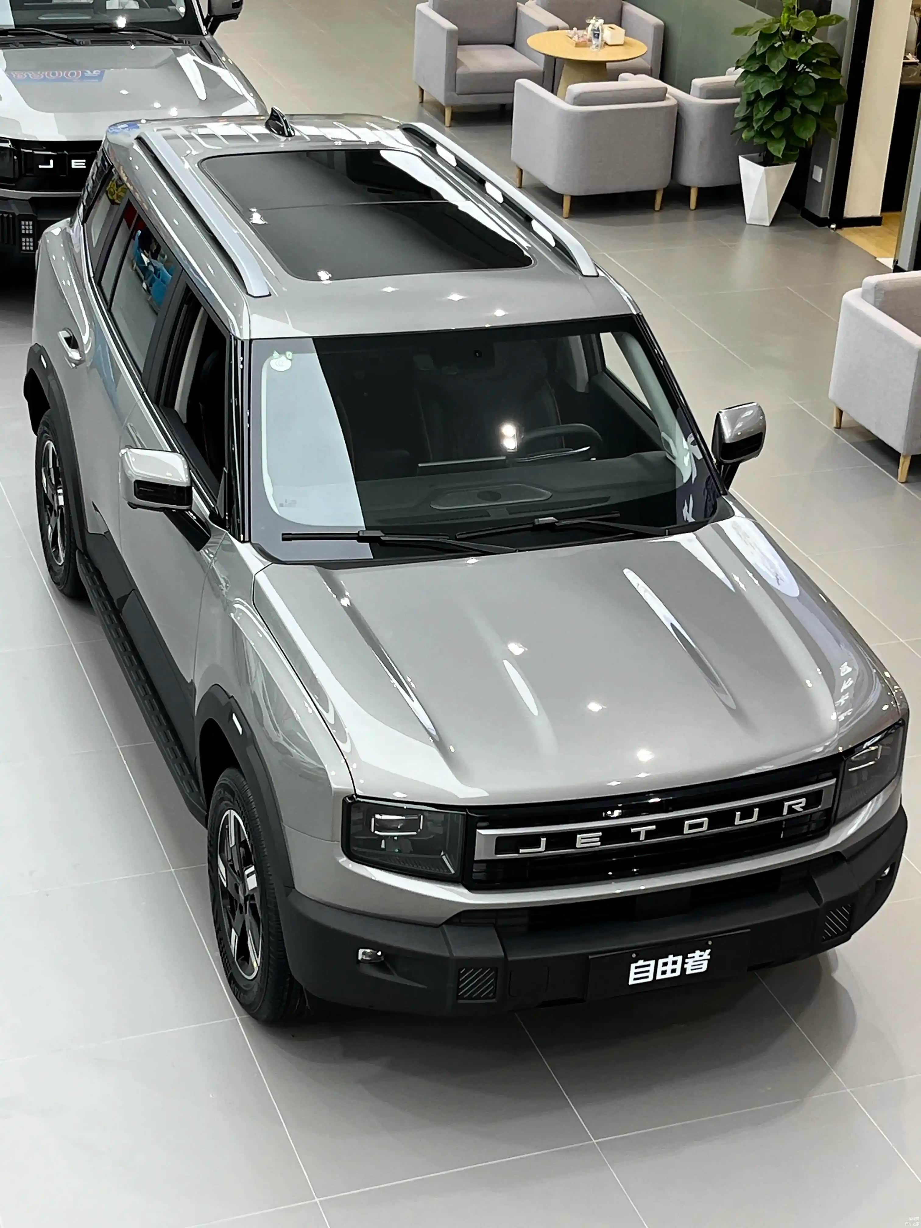 捷途自由者可以被看作是山海T1系列的燃油版本,它继续了流行的“方盒子”设计。方正设计的车头装配了矩形的进气格栅,并与两侧的四叶草大灯连接,再加上粗犷的熏黑前杠,共同营造出一种时尚的越野氛围。然而,自由者品牌在其格栅设计中取消了贯穿式的灯带,转而采用了“JETOUR”作为英文标志,并通过镀铬装饰条进行了细致的描绘,以进一步突出其力量感。