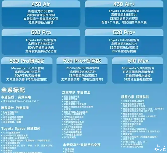 续航性能方面,铂智3X提供了多种选择以满足不同消费者的需求。两款入门车型续航范围为430km,对应价格区间为10.98-11.98万元;四款中配车型续航达到520km,价格区间为12.98-15.98万元;而顶配的Max版本车型续航更是高达610km,售价为15.98万元。在电池安全方面,丰田拥有丰富的实践经验,特别是在动力电池领域,其累计销售额已超过2800万元,且一直保持“零自燃”的优异记录。铂智3X也继承了这一优良传统,为消费者提供了安全可靠的电池系统。