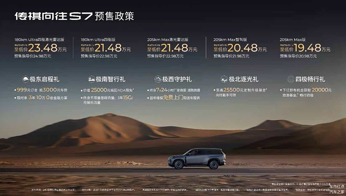 作为传祺向往首款高阶智驾车型,传祺向往S7开启预售,国补后预售价区间为19.48-23.48万元。
