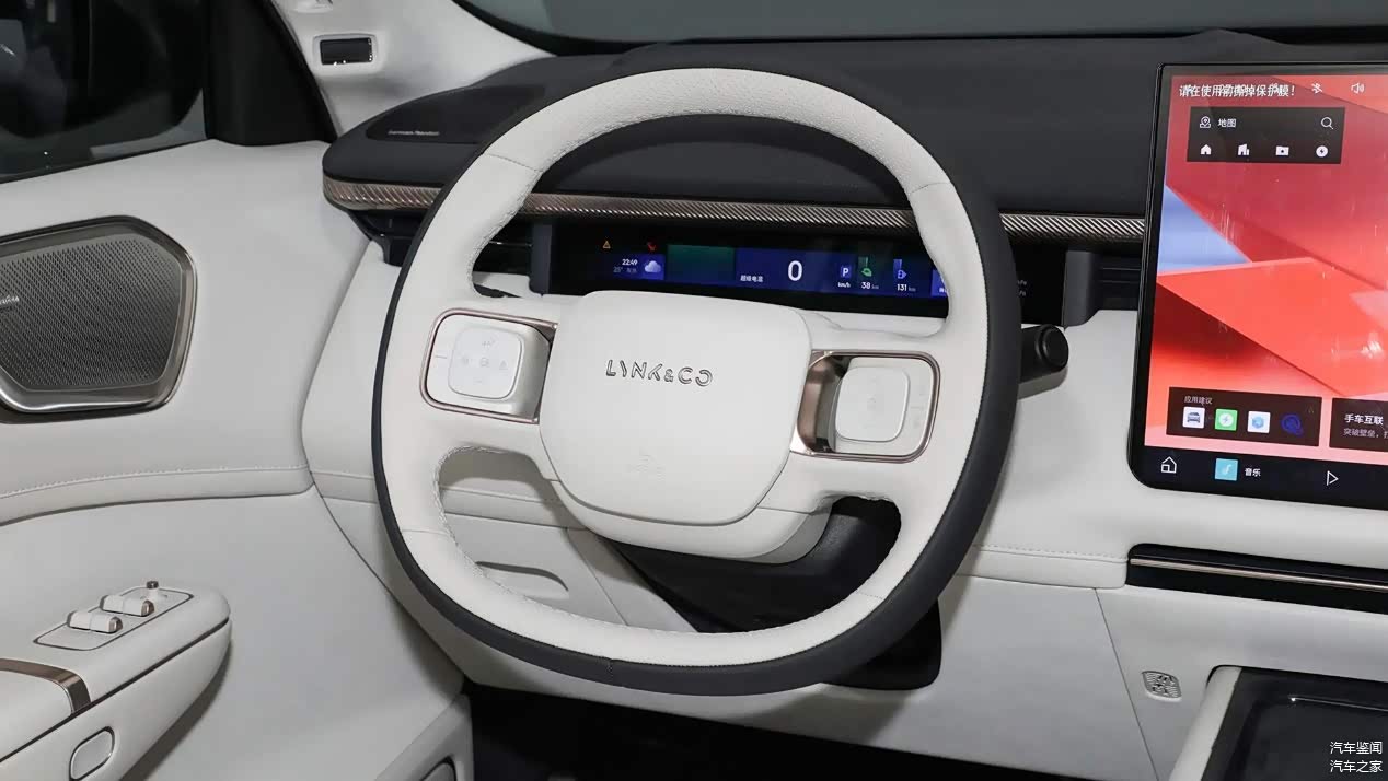 另外可能是为了照顾这台巨屏,领克900的方向盘造型算是方圆有度,既不是传统纯圆方向盘,也不像传统双D方向盘那样棱角分明,但又能看出来有点方,还有左右两侧功能键区同样采用了圆角饰框,这样衬托座舱巨屏视觉效果也算协调了。
