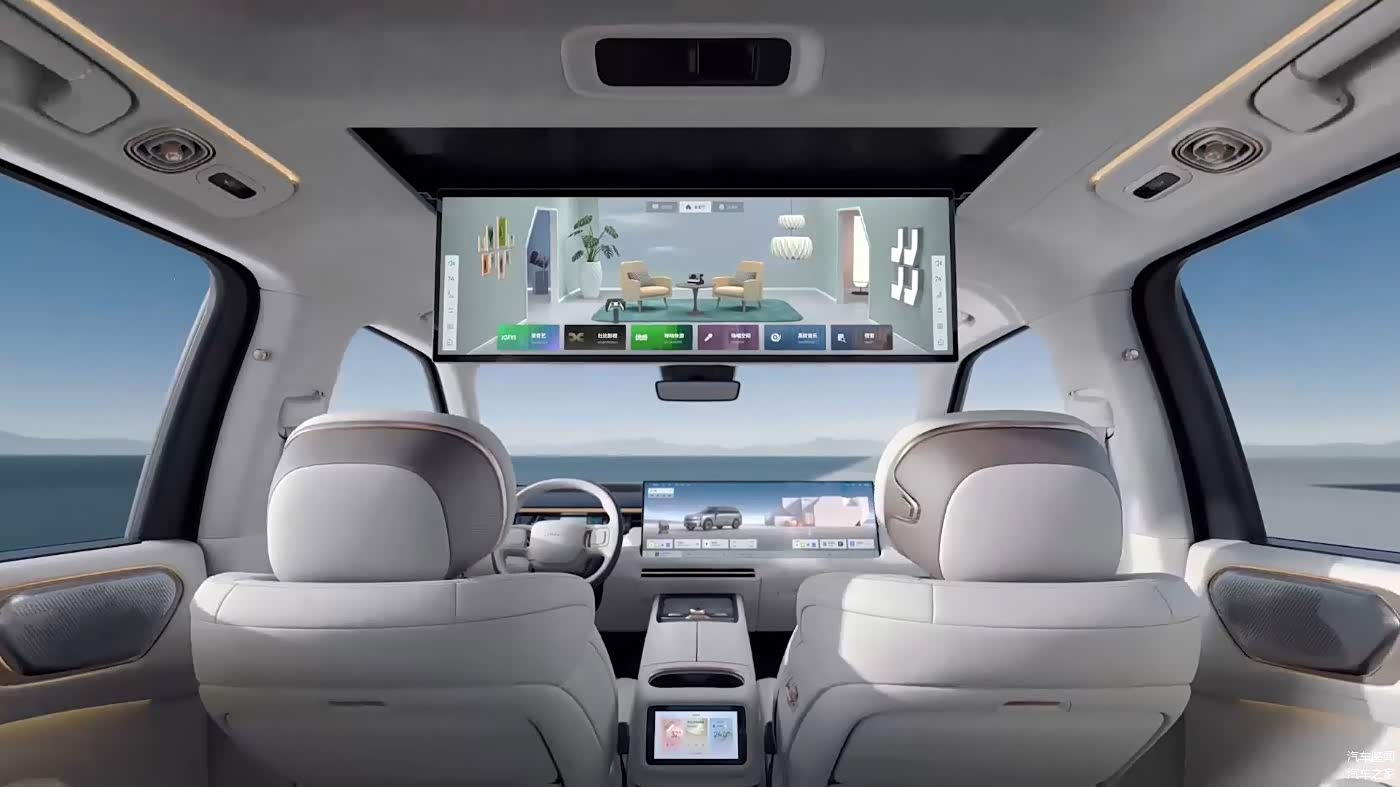 二排也设置了一台可折叠收纳的30英寸6K巨屏,后排娱乐功能必然也相当丰富了,相较之前出现的投影来说,笔者认为在座舱这种相对狭窄的环境中,屏幕显示效果相较投影效果应该会好一点,您说呢?