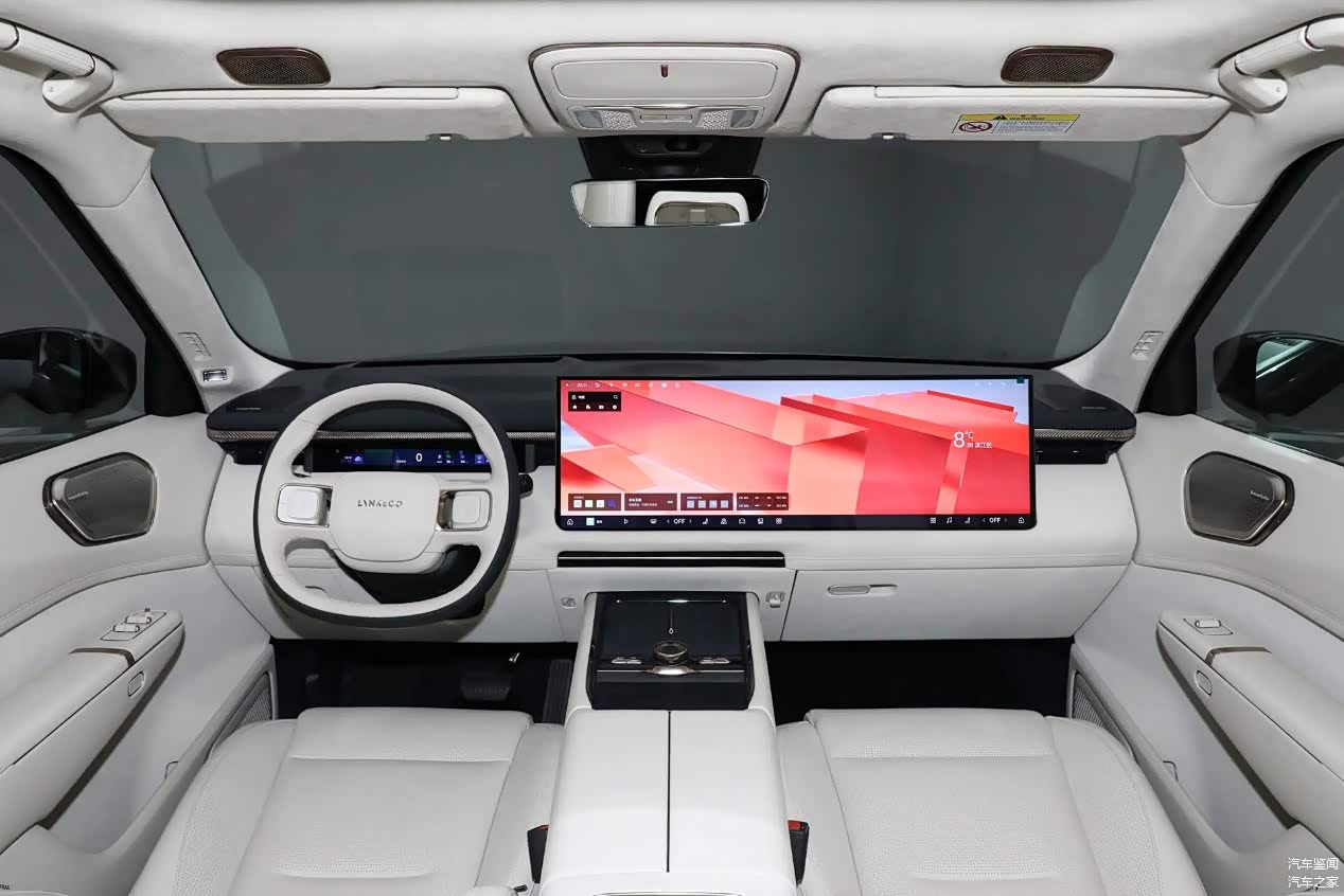 30英寸6K巨屏在领克900的座舱中相当显眼,甚至因此掩盖了座舱设计的一些特点,不过这个级别和定位的车辆座舱设计通常也会采用简约大气典雅的设计,所以这幅巨屏也算不上特别突兀。