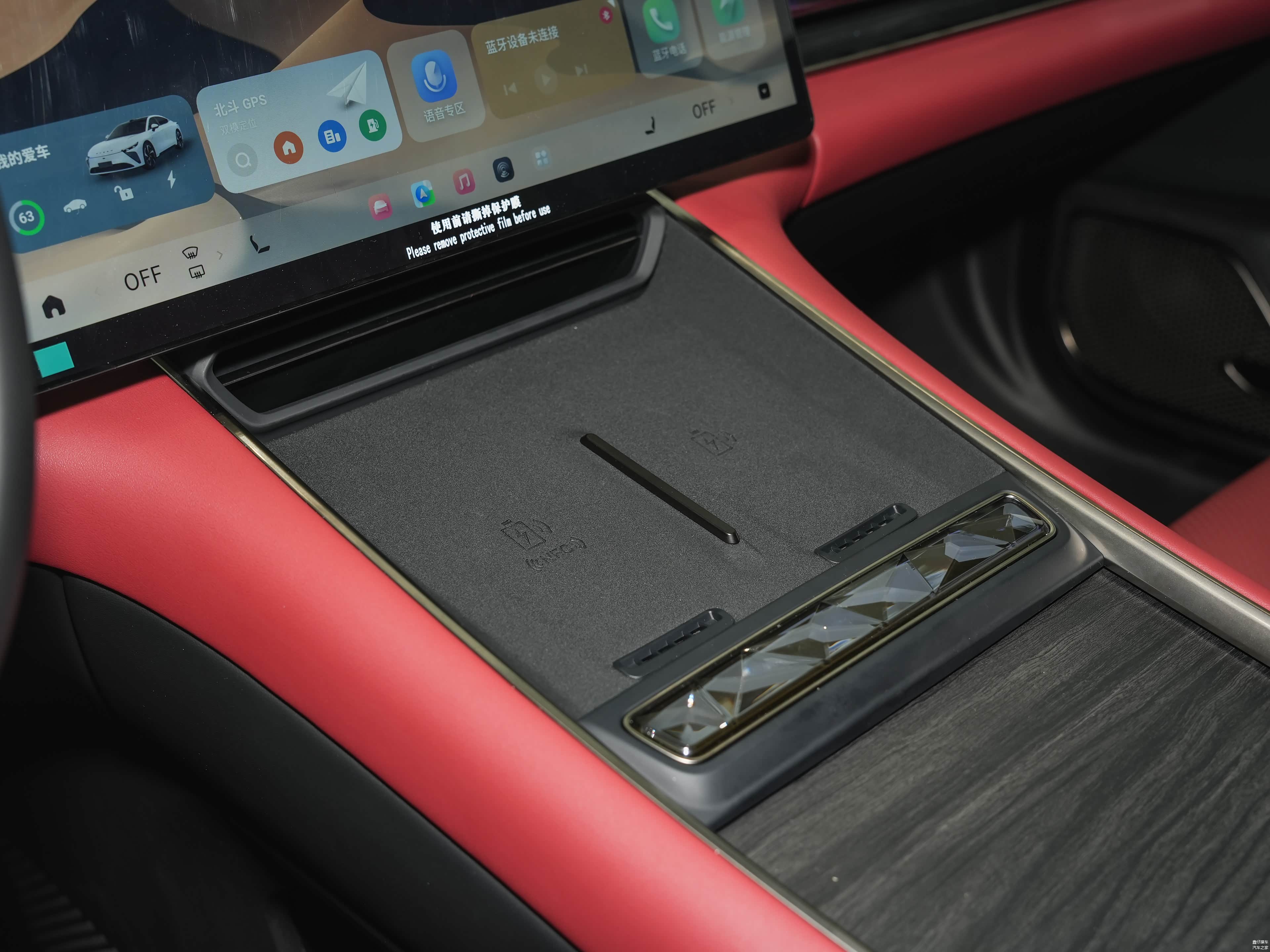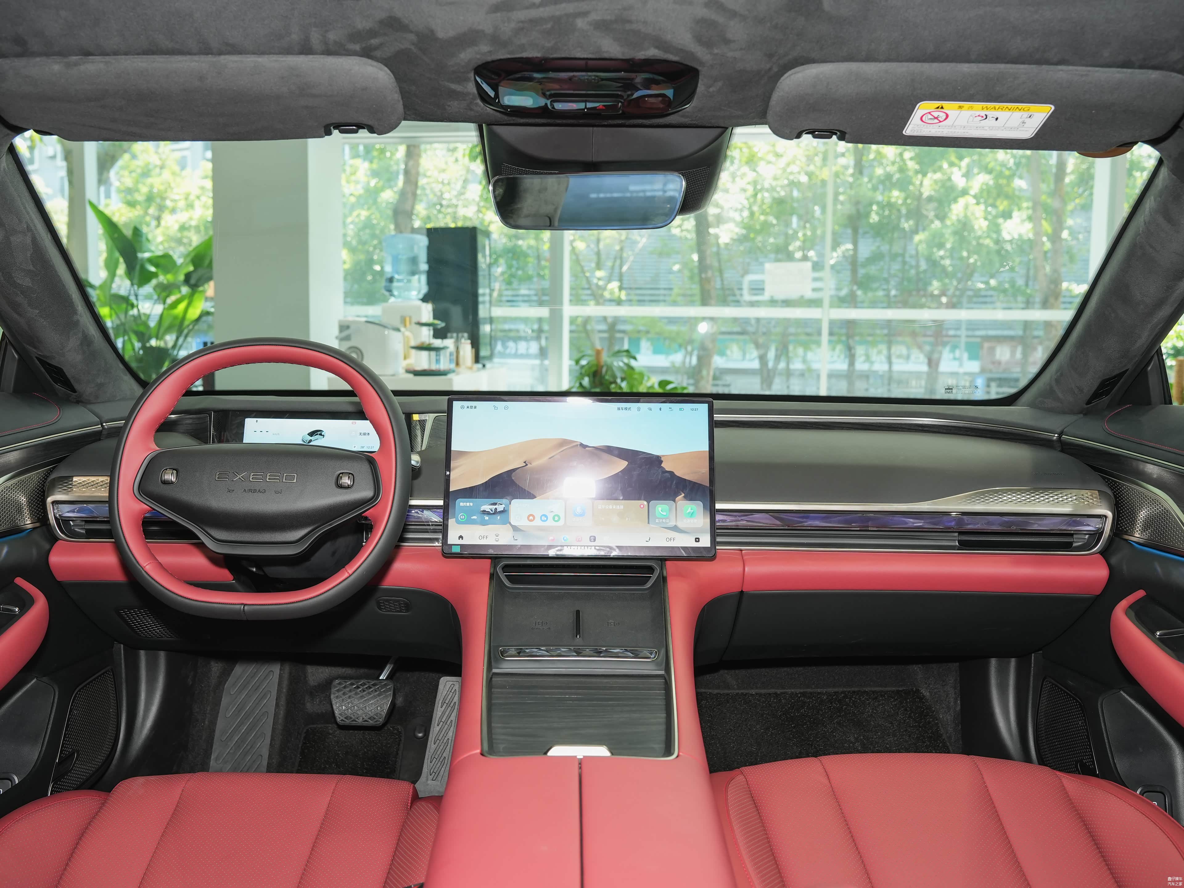 车内提供霞红和瓷青两种配色,搭载15.6英寸2.5K中控屏,内置高通骁龙8295芯片,优化多媒体交互体验。