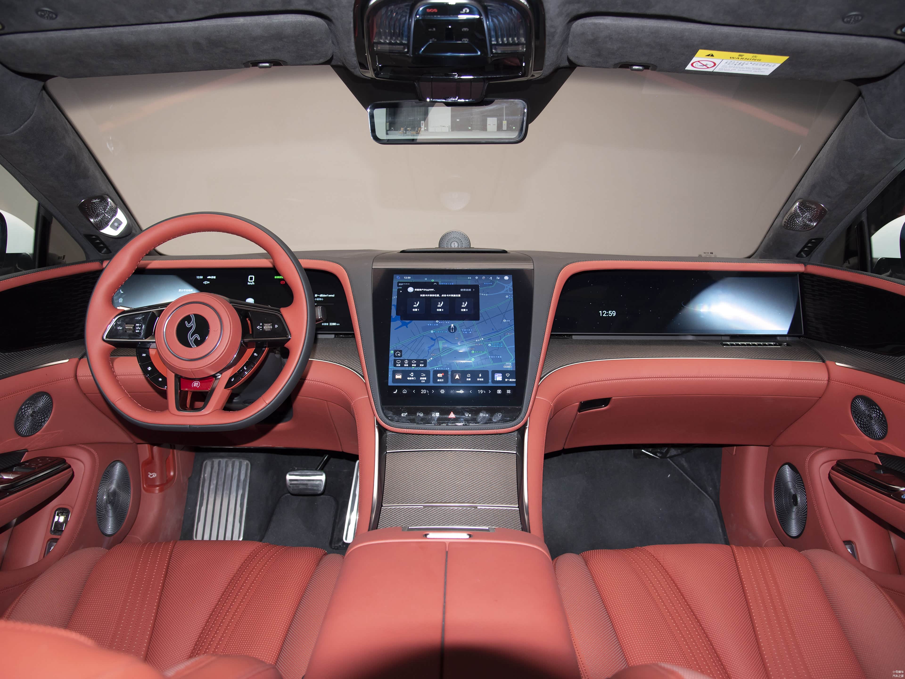 辅助驾驶功能方面,新车搭载了由3颗激光雷达、备5颗毫米波雷达、13颗高清摄像头、12颗超声波雷达组成的感知硬件,主控芯片是两颗英伟达Orin-X,支持高阶智驾。