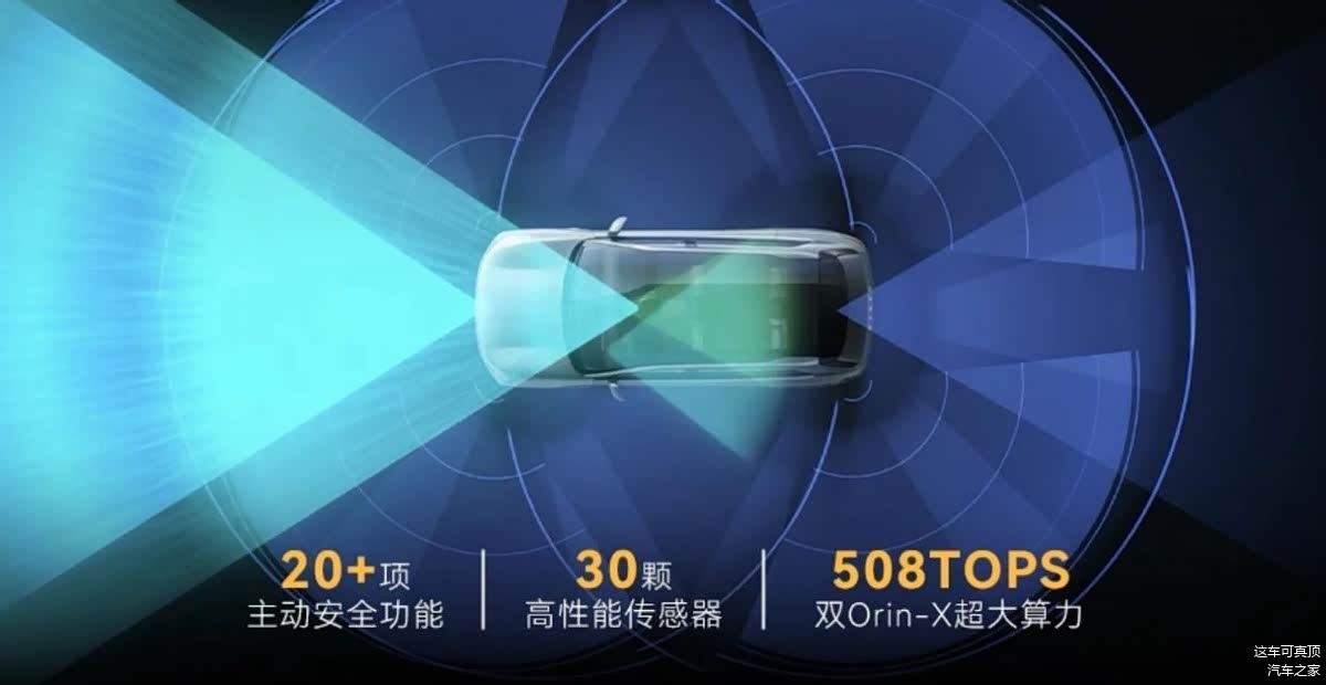 先说一下四款车型的智驾性能吧。入门的plus舒适智享版只有常规的L2级驾驶辅助功能。 Por高速智驾版,看名字就知道了,拥有高速路况下的智驾领航功能,采用的是纯视觉智驾方案。而max和ultra版,用的是自家的猎鹰智驾系统,配备了双英伟达Orin-X芯片,508TOPS的算力,还拥有包括激光雷达在内的30个传感器,可以实现高速和城区的无图智驾领航,另外像是代客泊车、离车泊车 、智能召唤等功能,也是不出意外的全部支持。