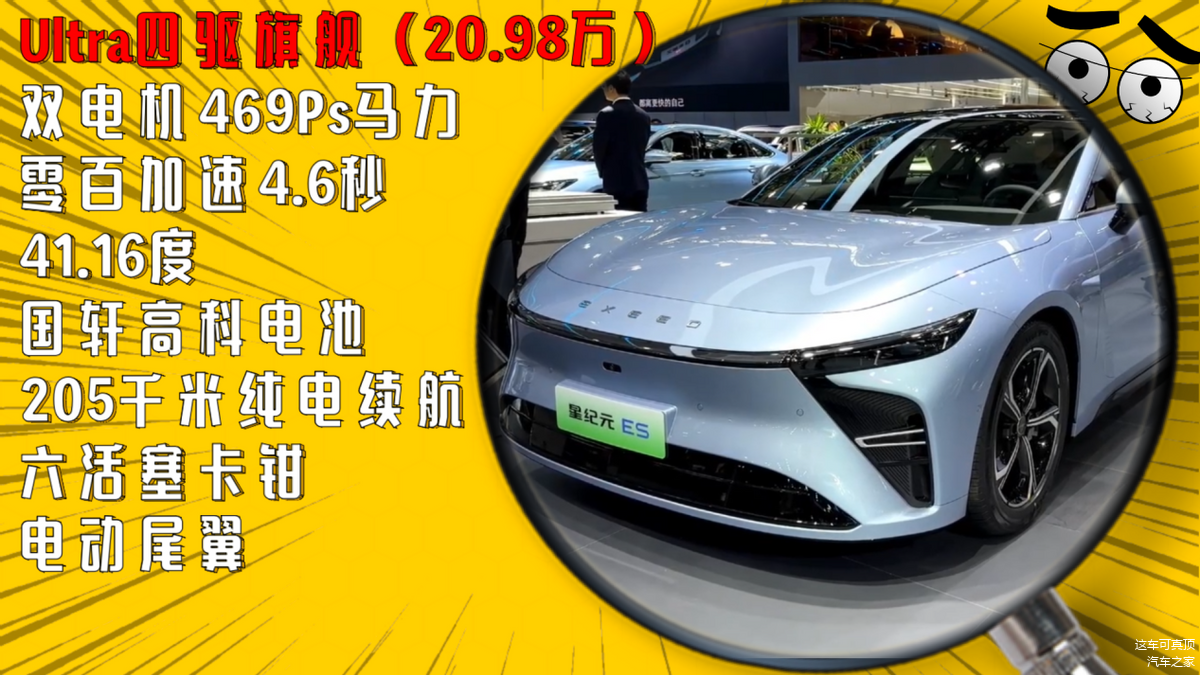顶配的Ultra版,价格上继续贵了2万,来到了20.98万。首先动力升级为双电机,零百加速时间为4.6秒,普通后驱版是7.6秒。然后电池容量略微提升,不过纯电续航里程没变,全系都是205千米。顶配还多了六活塞卡钳以及电动尾翼。还是那句话,太贵了。况且追求动力的话,这价位比它跑得快得电车,多的是。