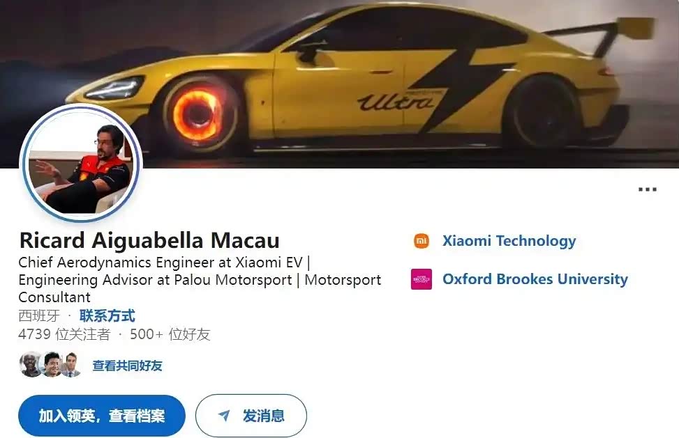 近日,原法拉利F1车队空气动力学家Ricard Aiguabella Macau正式出任小米汽车首席空气动力学工程师的消息引发关注。Ricard Aiguabella Macau的职业生涯横跨赛车与量产车两大领域。他拥有西班牙巴塞罗那UPC大学机械工程学士学位,并在Epsilon Euskadi/Mondragon大学及牛津布鲁克斯大学获得汽车运动硕士学位。