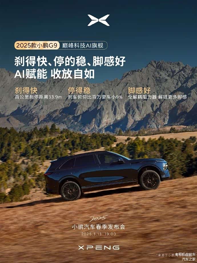 3月13日晚间,小鹏汽车召开春季发布会,2025款 小鹏G9(图片 | 参数 | 询价)正式上市,共分为3个版本,G9售价24.88万-27.88万元,上市45分钟,2025款小鹏G9大定突破了3000辆。