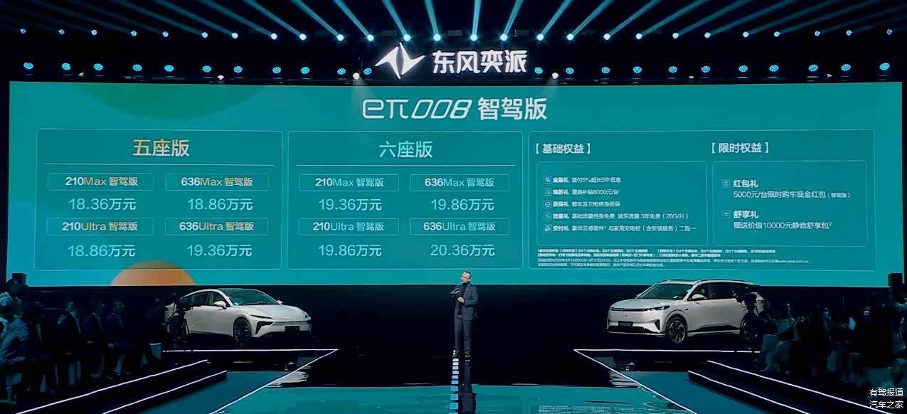 3月14日,东风奕派eπ008智驾版上市,新车可选增程式和纯电动2种动力形式共8款车型,售价区间为18.36万-20.36万元。新车基本延续现款造型,主要变化在于标配eπ PILOT智驾领航升级包(此前选装价格为1.8万元)。