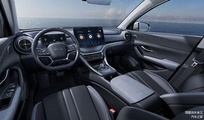 内饰方面,海狮05 EV走的是简洁科技风。中控台配备了一块超大尺寸的悬浮式液晶显示屏,搭载了比亚迪最新的DiLink 100智能座舱系统,操作流畅,功能丰富。方向盘采用了海洋网的设计风格,小巧圆润,握感舒适。车内用料和做工也达到了同级别车的最佳水准,整体给人一种高级感。