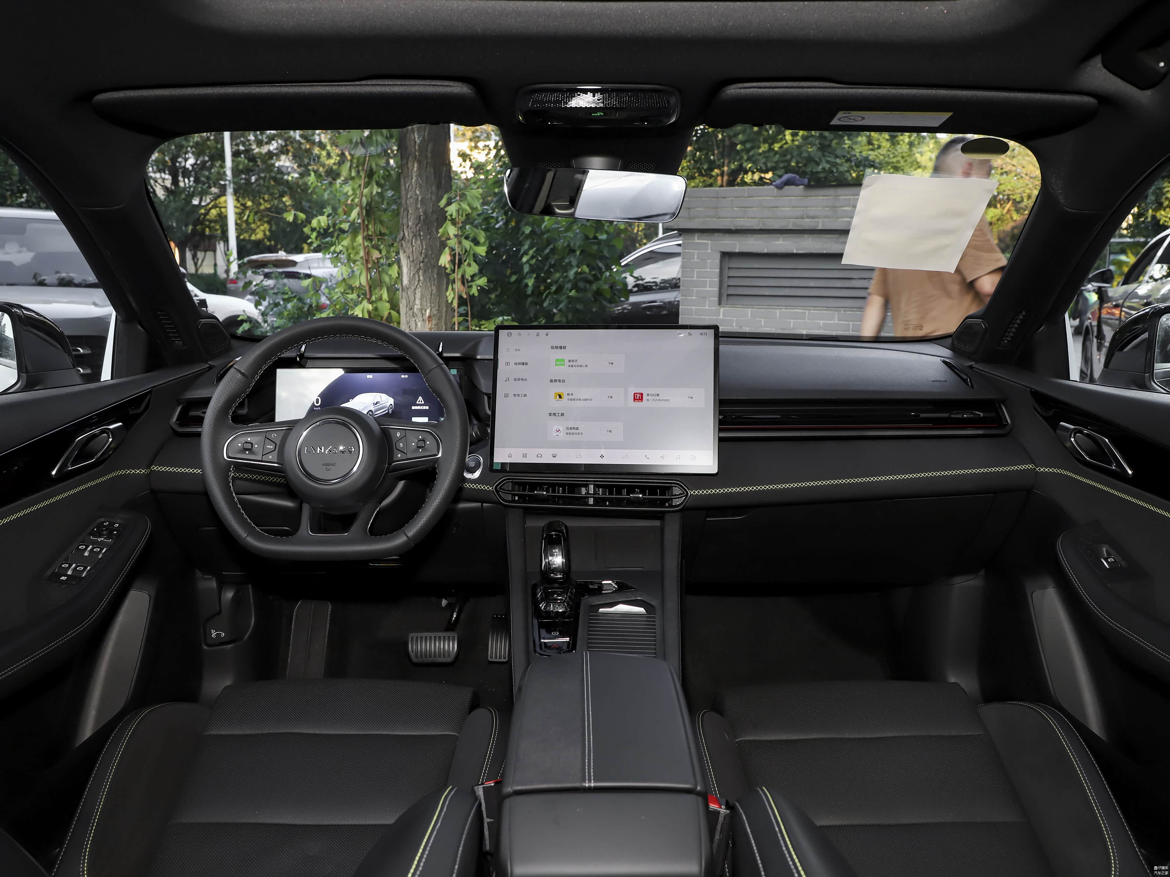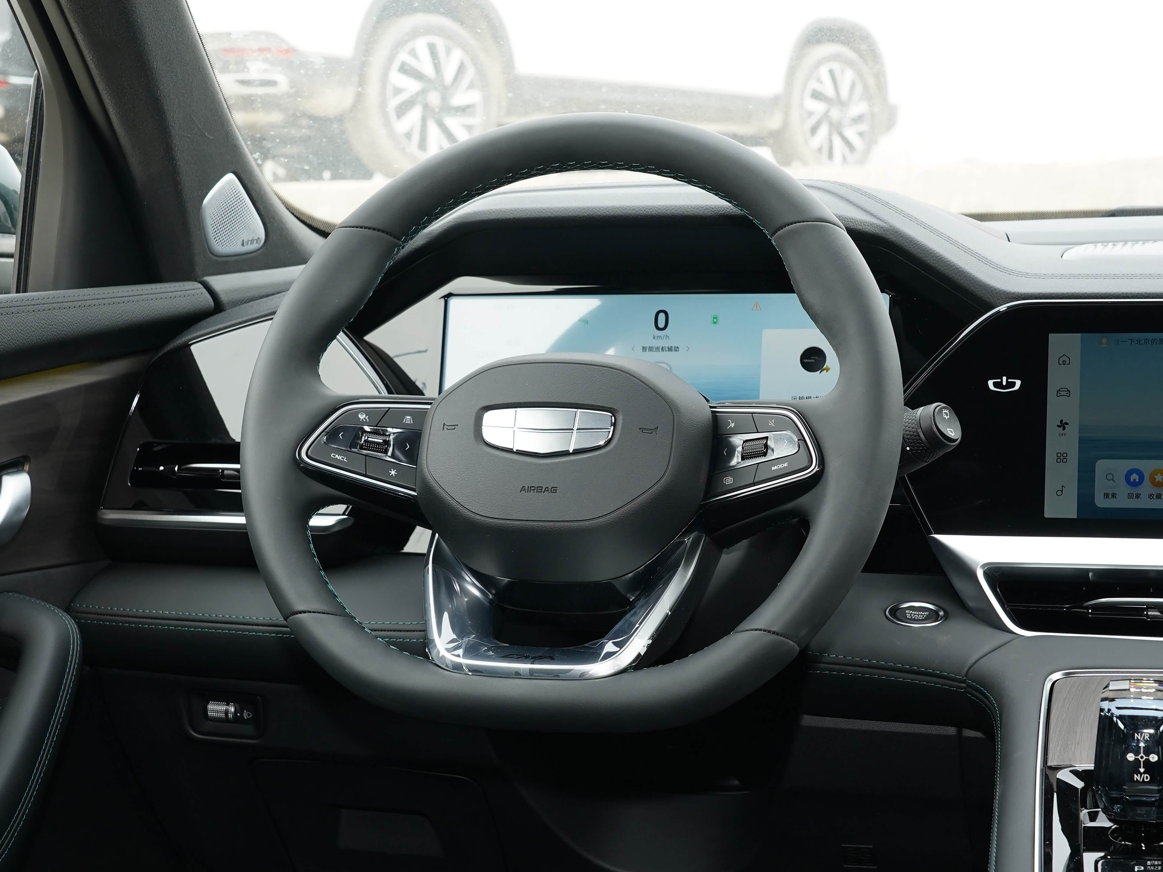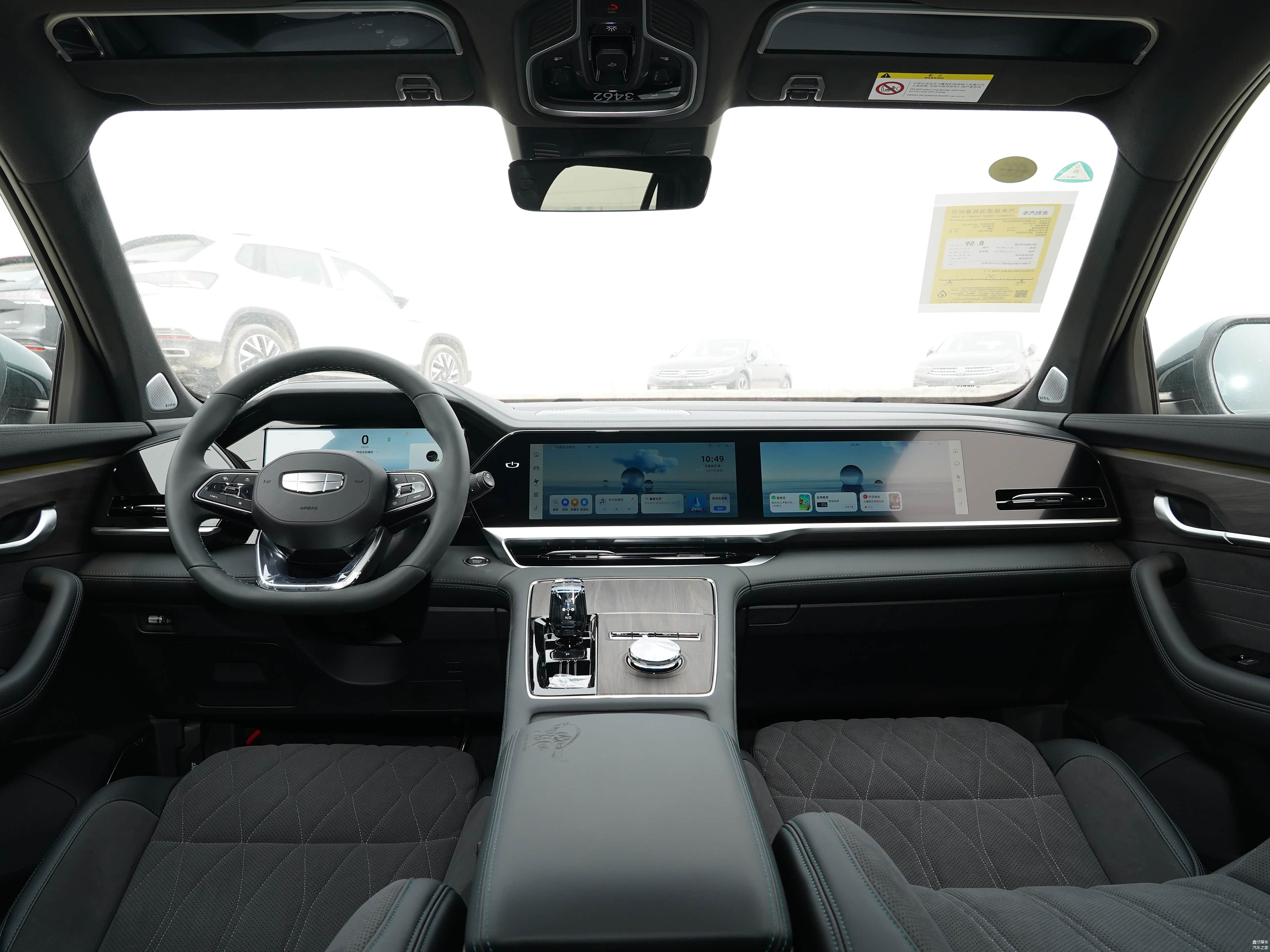 车内搭载三块12.3英寸屏幕,并支持AR-HUD抬头显示。车机系统为银河OS 2.0,内置高通骁龙8155芯片。驾驶辅助方面,配备全速自适应巡航、车道保持辅助、盲区监测等功能。