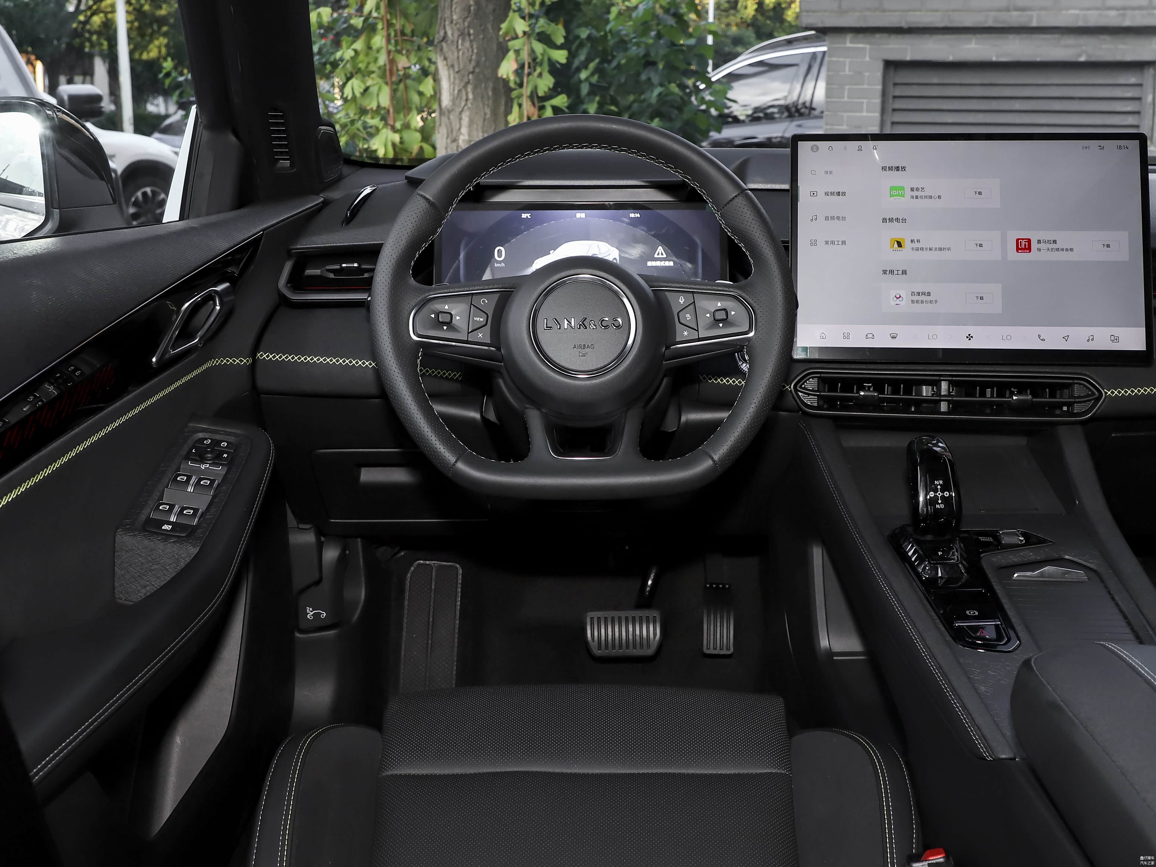 车内配置方面,2025款领克03搭载15.4英寸智能娱乐屏,并升级高通骁龙8155芯片,配合LYNK OS N智能车机系统,提升操作流畅度。部分车型新增前方感知摄像头、电动后备厢、50W无线充电等功能。