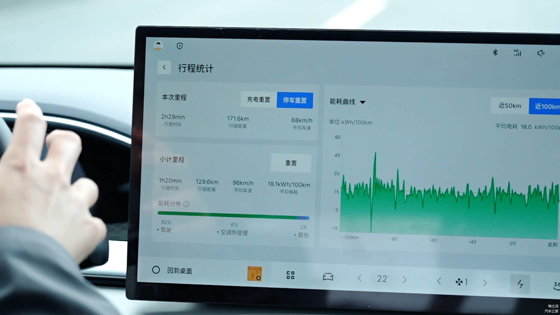 另外,我们也在两次测试中发现了吉利星愿一些我们不是很懂得地方,比如空调系统。第一次测试时候,310km梦想版空调设定到22°C,1档风的情况下,出了的风特别热。而第二次测试时候,两款车型空调都设定到22°C,1档风,开AC的情况下,410km探索版车型出来的是32°C热风,310km梦想版出来的是22°C冷风。而且很明显1档风的空调也占了纯电续航消耗的6-9%左右。