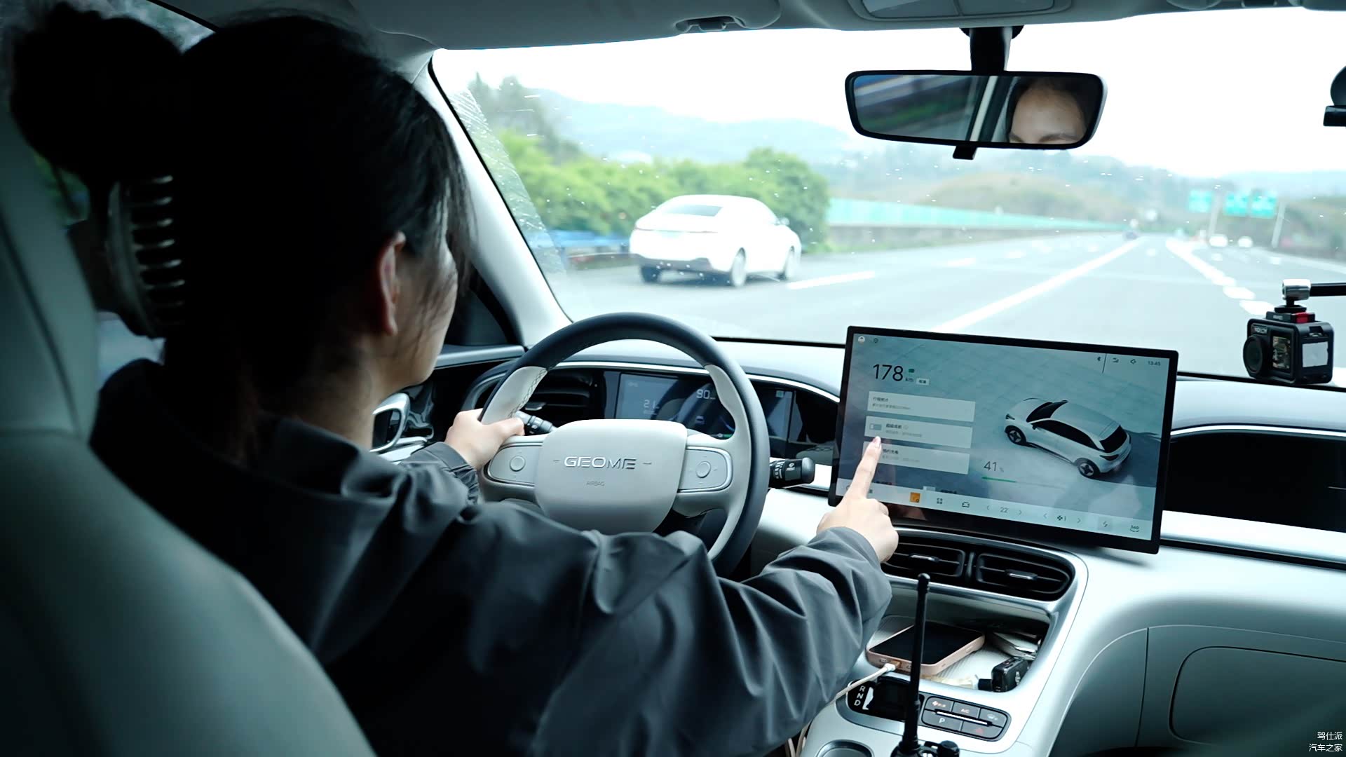 另外,我们还找来了一台之前测试过高速续航比较“硬”的吉利银河E5 530探索+来陪跑,作为本次测试的数据参考。