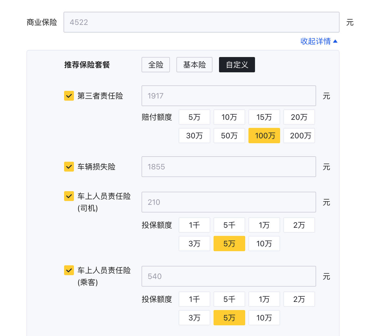宋Pro DM-i的主要保险成本包含车船税、交强险以及基本商业保险,其中,车辆免车船税、交强险为950元/年,而包含有100万第三者责任险、5万车上人员责任险(含司机+乘客)以及车辆损失险的商业保险约为4522元/年,我们按照首年不出险、次年保费递减10%计入交强险与商业保险,计算可得宋Pro DM-i前三年综合保险成本约为14775元、平均约为4925元/年。