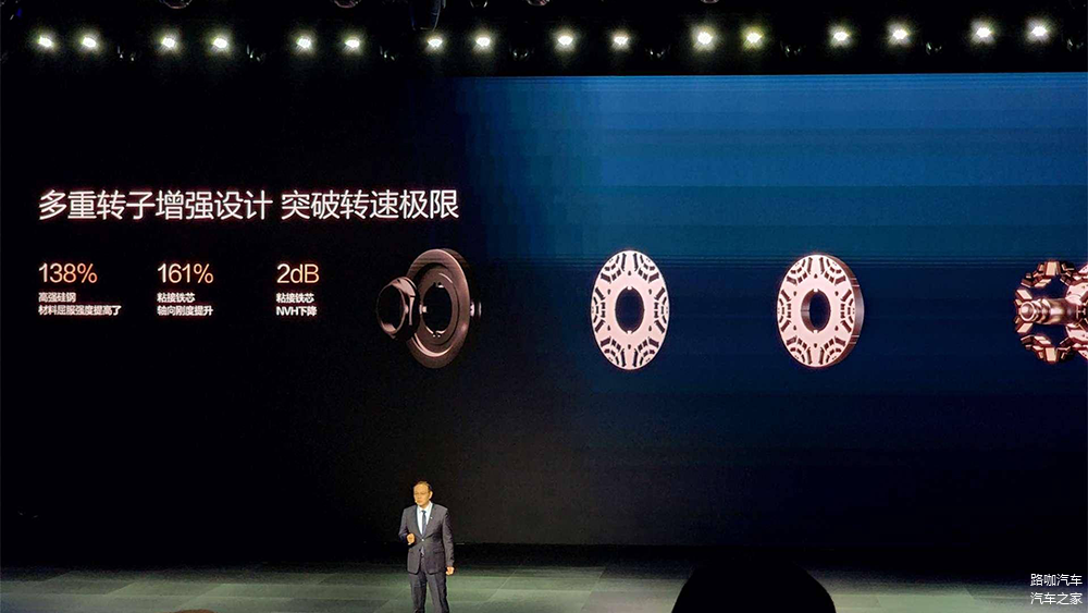 就整套电机架构总结下来,可以说虽然汉L EV的双电机有上千匹马力的功率储备,但本质上其并不擅长走极致的性能路线,而是在解决硅钢片强度、退磁、轴承压力、热场分布这些问题后,通过超高转速的电机去规避电动车高速动力孱弱,至于制动系统能否扛得住较大的制动压力,叠加动力回收系统,云辇预瞄的主动制动策略,在只有前刹车盘做打孔散热的基础上,不用碳陶基本上也完全够用。