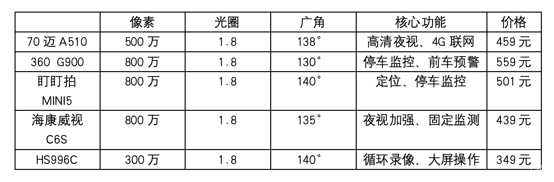 注重夜视效果、使用体验感的首选70迈A510,在乎安全行车驾驶的可以选择360G900,喜欢外型小巧的可以考虑盯盯拍 MINI5,注重大厂背书的可选海康威视 C6S,追求物美价廉的那必须是凌度 HS996C。
