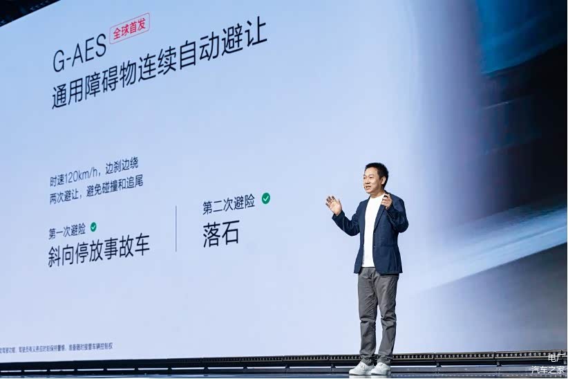 在发布会上,极氪科技集团副总裁陈奇宣布720度主被动安全系统支持G-AES通用障碍物连续自动避让功能。极氪的G-AES最高反应速度可达130km/h,完全满足高速场景。识别能力提升,小至三角警示牌、锥桶,大至乱入的牦牛、刮倒的树木,所有宽度超过40cm,高度超过60cm的异形障碍物,均可识别、避让。基于更灵活的策略,G-AES通用障碍物连续自动避让功能既可采取紧急避让+紧急制动,也可连续紧急避让,边刹边绕。该项功能预计在今年6月陆续开启推送。