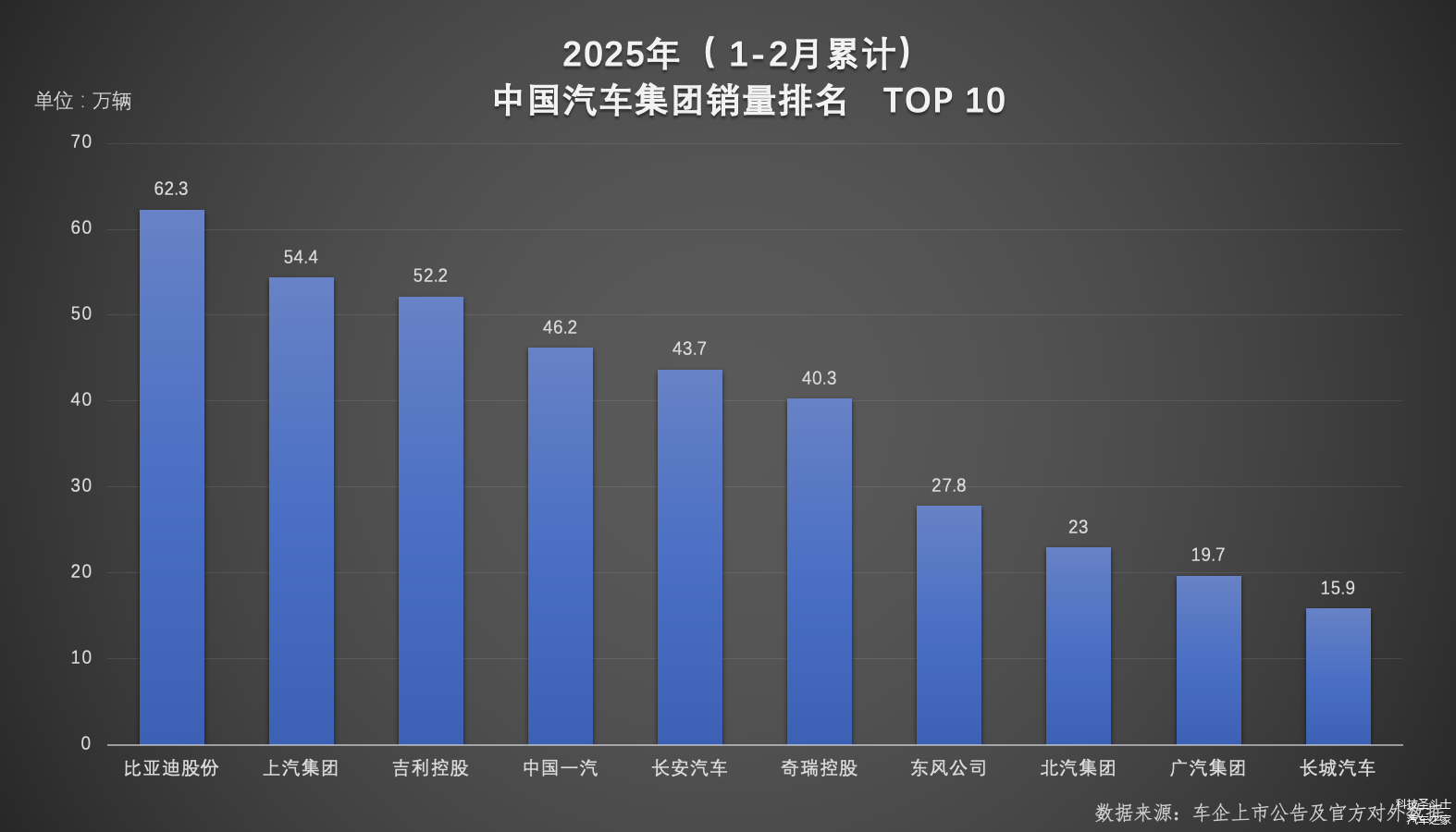 2025年1--2月,新能源汽车销量冠军依然是比亚迪,从数据来看,比亚迪在1-2月累计车企集团销量中以62.3万辆登顶,领先第二名超7.9万辆;同期品牌销量排名中,比亚迪以61.4万辆的成绩再度夺冠。不仅如此,在2月单月车企销量排名中,比亚迪以32.28万辆稳居第一,持续领跑的全维度销冠,持续印证市场统治力。这一连串数字背后,是比亚迪技术、产品与市场布局的全面爆发。