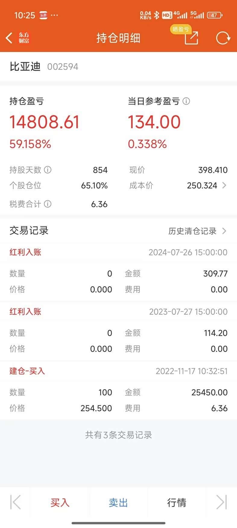 我是2022年的时候250元买的比亚迪股票,每股已经赚150元了,虽然只买了100股,那也赚了15000元了,感谢比亚迪。因为比亚迪技术为王,创新为本的理念,比亚迪的工程师文化,比亚迪的厚积薄发,造就了如今比亚迪的技术优势,销量优势,所以我看好比亚迪。比亚迪以销量为答卷,向行业证明:技术创新与用户思维兼具,方能在市场竞争中稳立潮头。未来,随着比亚迪在智能化、全球化领域的持续发力,其领跑姿态或将为中国汽车产业书写更多精彩篇章。
