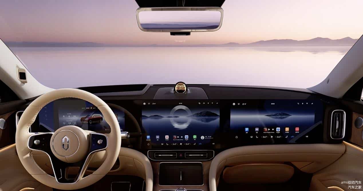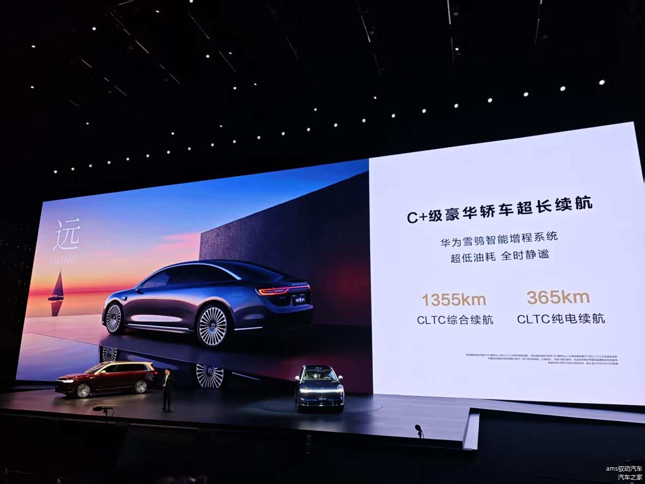 内饰设计上,新车在智能科技与奢享体验层面得到升级,搭载HarmonyOS 4智能座舱,而由中控三联屏+AR-HUD+激光投影巨幕+百万像素智慧投影灯系统+4个可车控的专用华为平板组成的“十屏满载”全场景智能空间是其最大亮点,全新后排控制屏6.58英寸MagLink Mini支持磁吸拆合,便捷控制车内功能的智能联动。同时,压缩机冷暖箱也得到升级,制冷制热范围更大,并增加了电动开关实体按键,更可语言控制。