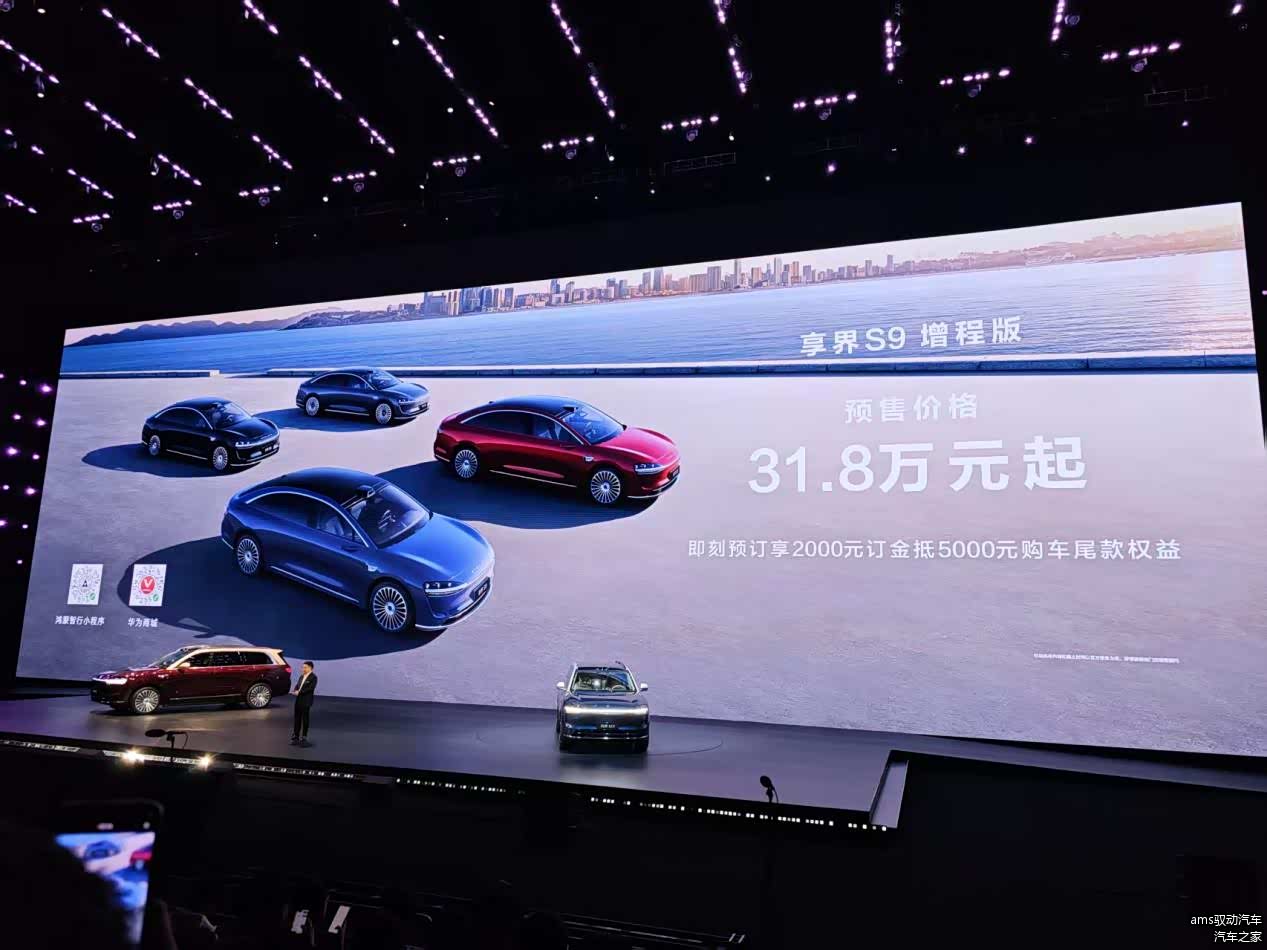 在本次发布会上,享界S9增程版也正式开启预售,新车将推出3款车型,预售价格区间为31.8万~37.8万元起,即刻预订享2000元订金抵5000元的购车尾款权益,新车将于4月上市。