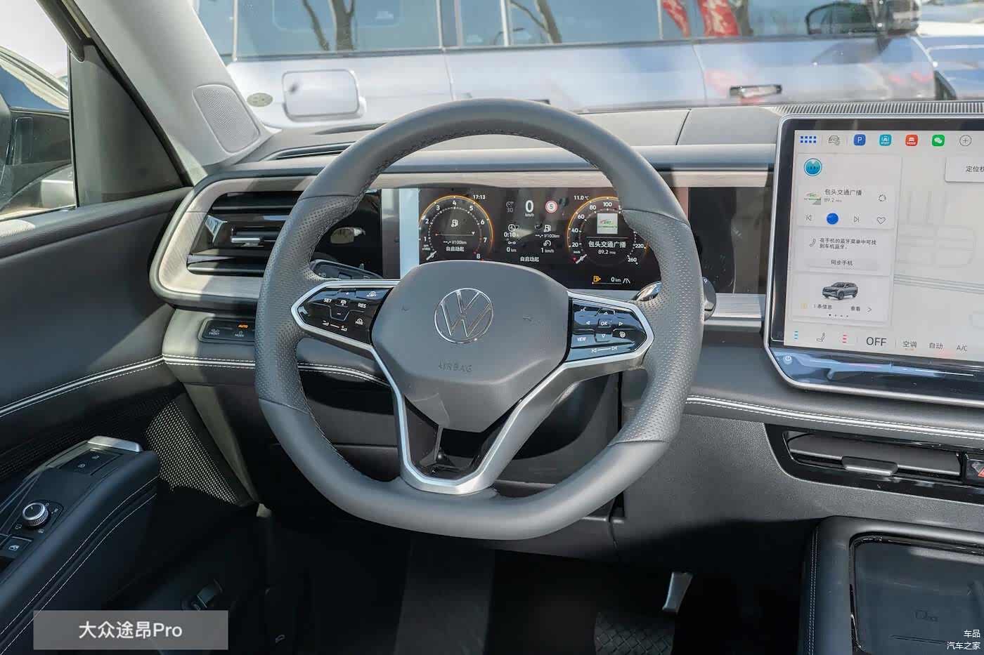 途昂采用了带重心偏转的中控,三辐式方向盘同样带触控,并采用了10.3+15.0+11.6英寸三屏组合,通过8155智舱虽然智能完成双区域语音交互,但却接入了DeepSeek大模型,并支持CarPlay/CarLife/HiCar等手机互联,可拓展性也值得表扬。装饰上,方向盘与座椅虽然不是真皮,但也采用了打孔工艺,档次稍逊色一些,可层次分明的设计依旧值得表扬。