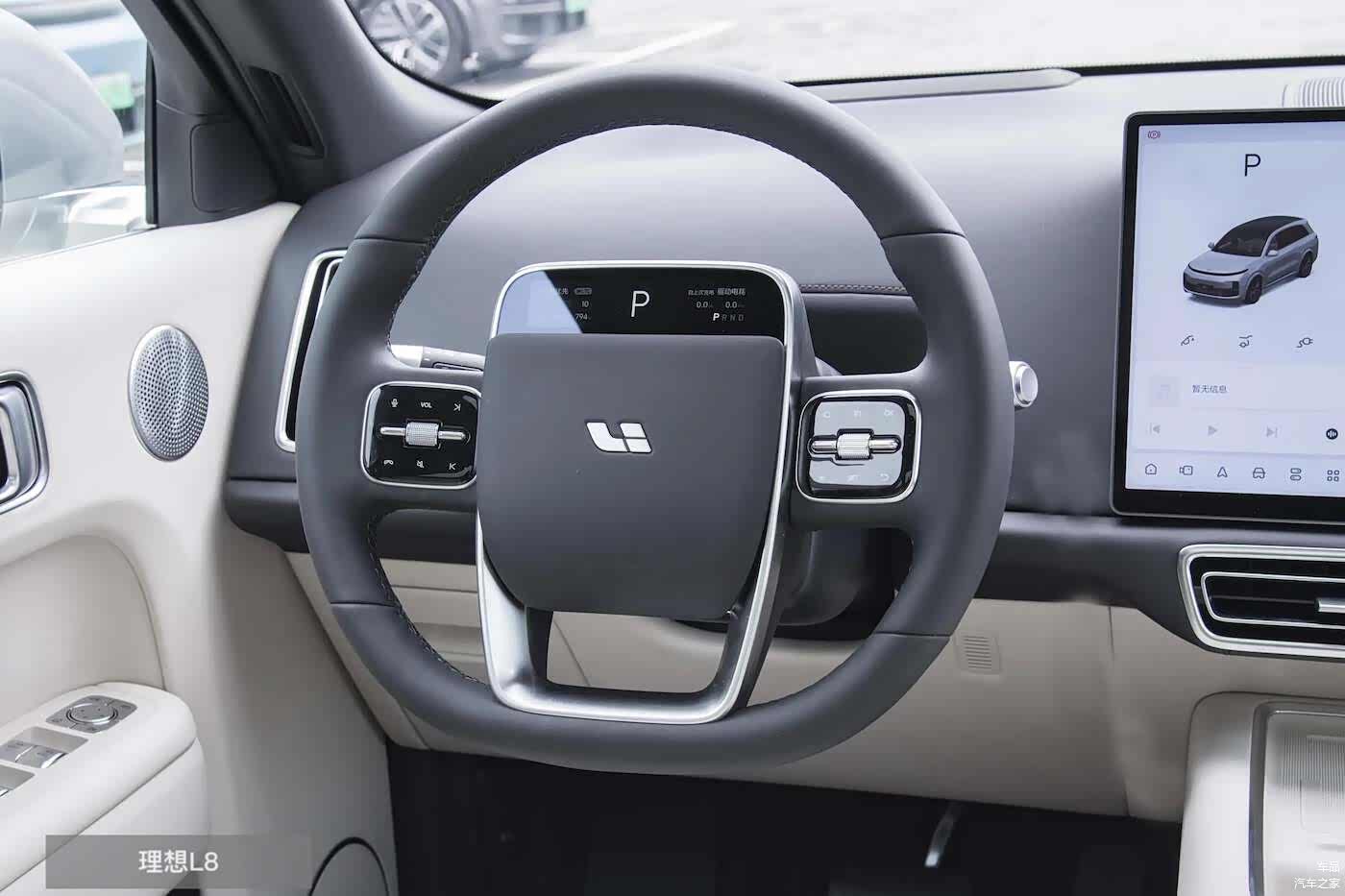理想L8采用了极简的座舱布局,三辐式平底方向盘上方既采用了触控,也带有驾驶员交互屏+HUD抬头显示来取代仪表盘,而中控与副驾一侧则布局了双15.7英寸联屏,它们组成的8295智舱将支持六区域语音交互,并可利用声纹识别、多指飞屏来进行交互控制。装饰上,其方向盘与座椅均为真皮,并实现了撞色装饰,软包覆盖面积较大。