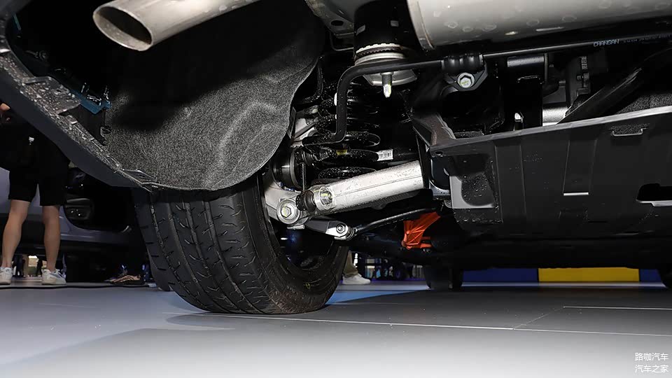 重点来看后悬挂,一般来讲,后悬挂的舒适调教难度,是根据连杆数量的增加而提高的,在10-15万价格市场,主流悬挂方案是三连杆、扭力梁或者H臂四连杆,小鹏MONA M03由于是前驱设计,所以后悬架部分几乎没有负载大重量零部件任务,而兜底扭力梁至少需要长后悬来托底,最能影响舒适性的其实是纵臂的长度,一般纵臂越长,舒适性调教极限就越高,不过对于纯电车而言,这套结构还要考虑横梁结构与纵臂的连接点位置,考虑到底盘动力电池的布局,这也就间接拉高了调教难度,所以只能是在舒适性和空间上找到平衡点,也就是说,虽然扭力梁调教得到运动上限极高,但落到小米MONA M03上,明显还是要做一些割舍的。