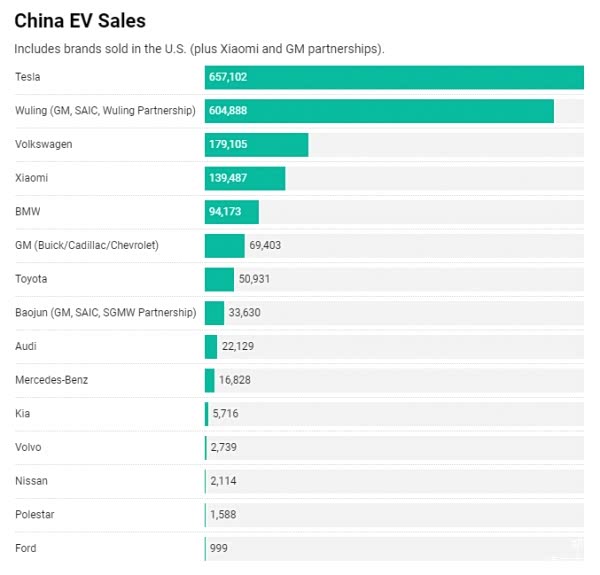 令人印象深刻的是,小米在中国的电动汽车销量超过了其他所有在中国及美国市场销售电动汽车的汽车制造商,其中包括奥迪、宝马、起亚、梅赛德斯 - 奔驰、日产、极星、丰田、大众以及沃尔沃等品牌。只有特斯拉和大众的销量超过了小米。