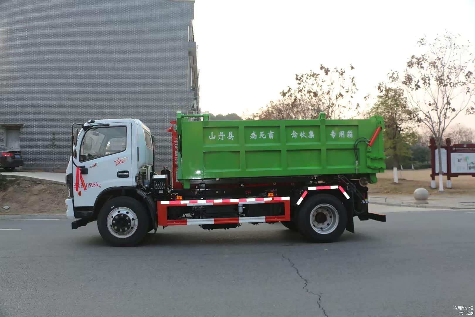 - 箱体:可配备 10-12 方勾臂垃圾箱使用,箱体采用碳钢制作,内部有特殊的防腐处理,箱内设有挡水板,防止污水泄漏。可选装液压支腿,在装卸箱体时提供额外支撑,保证车辆稳定性