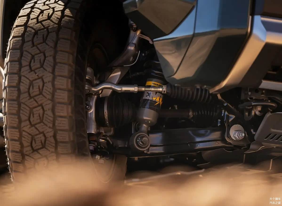 4Runner的原厂生产了一个越野版本,名为Trailhunter。这个版本使用了ARB的Old Man Emu 2.5英寸的锻造减震器和外置储液罐。OME减震器与33英寸的Toyo Open Country A/T越野轮胎相匹配。前悬挂的高度增加了2英寸,而后部则增加了1.5英寸,以提高车辆的通过性。此外,原厂还配备了一个涉水喉,可以方形地穿越小溪流。底盘的前后都装有高强度的钢护板,以防止岩石对底盘造成冲击。
